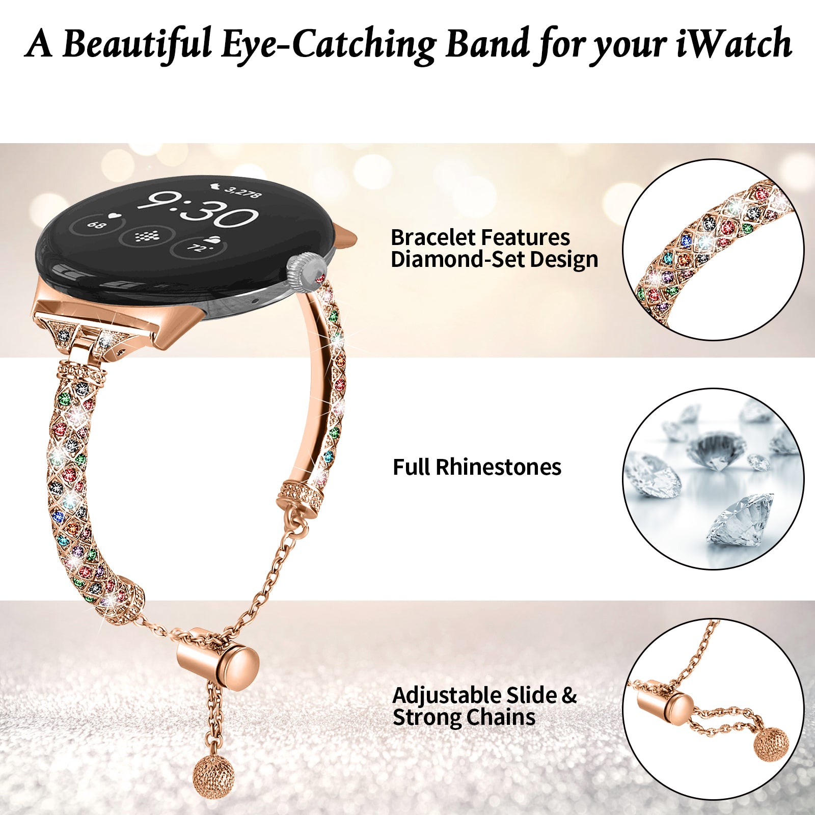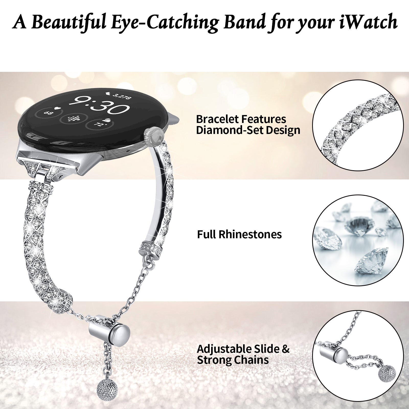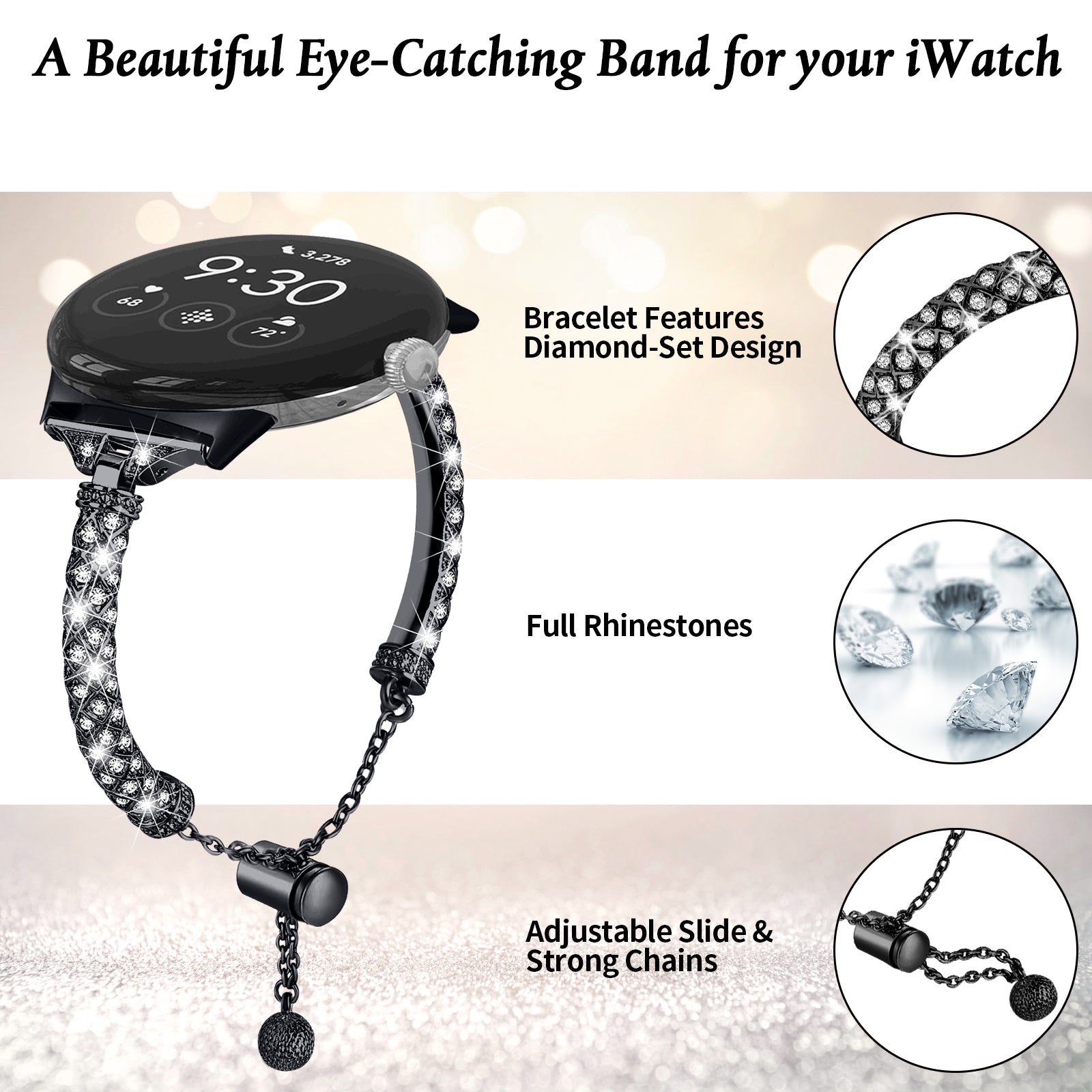 - Shiny rhinestone decor, elegant and stylish