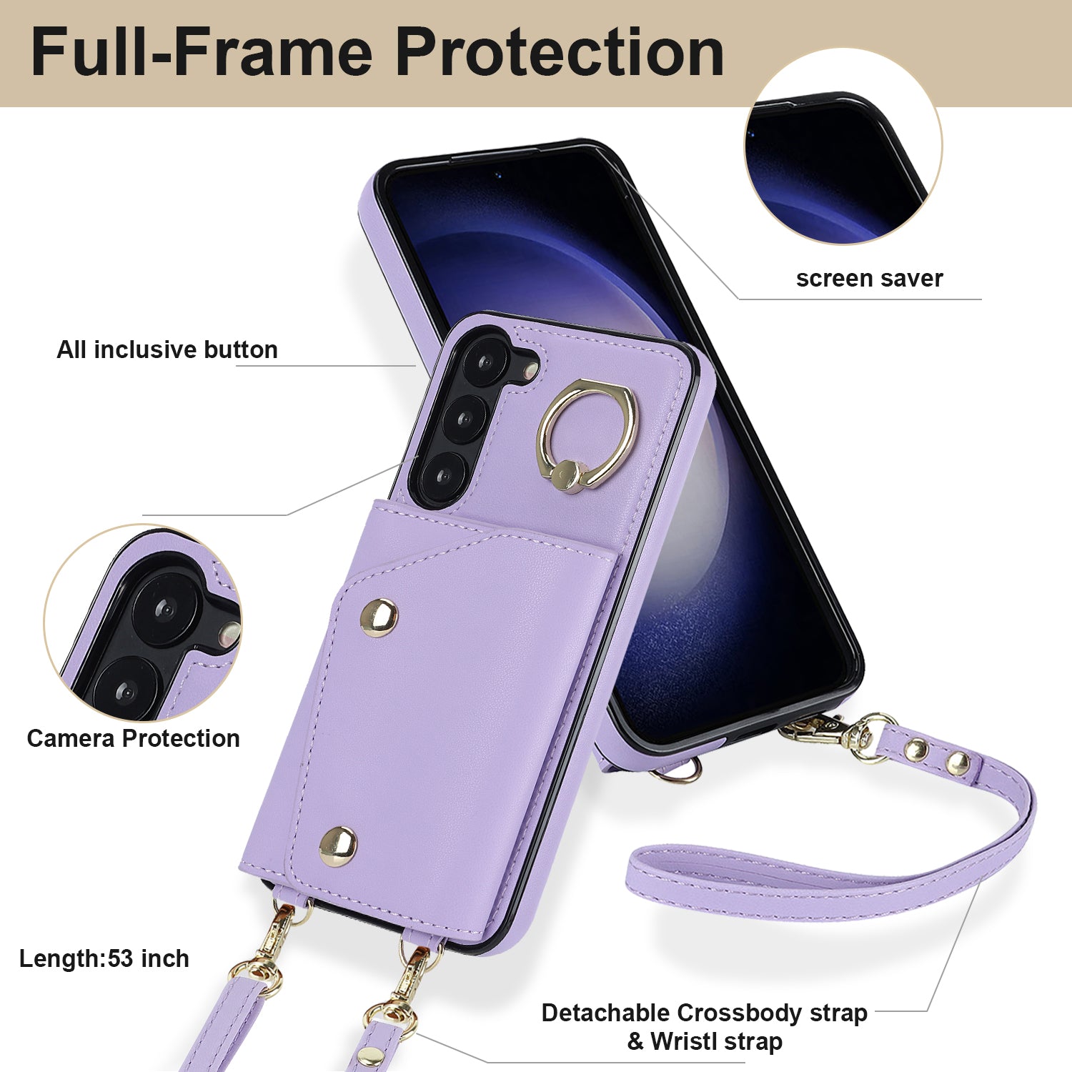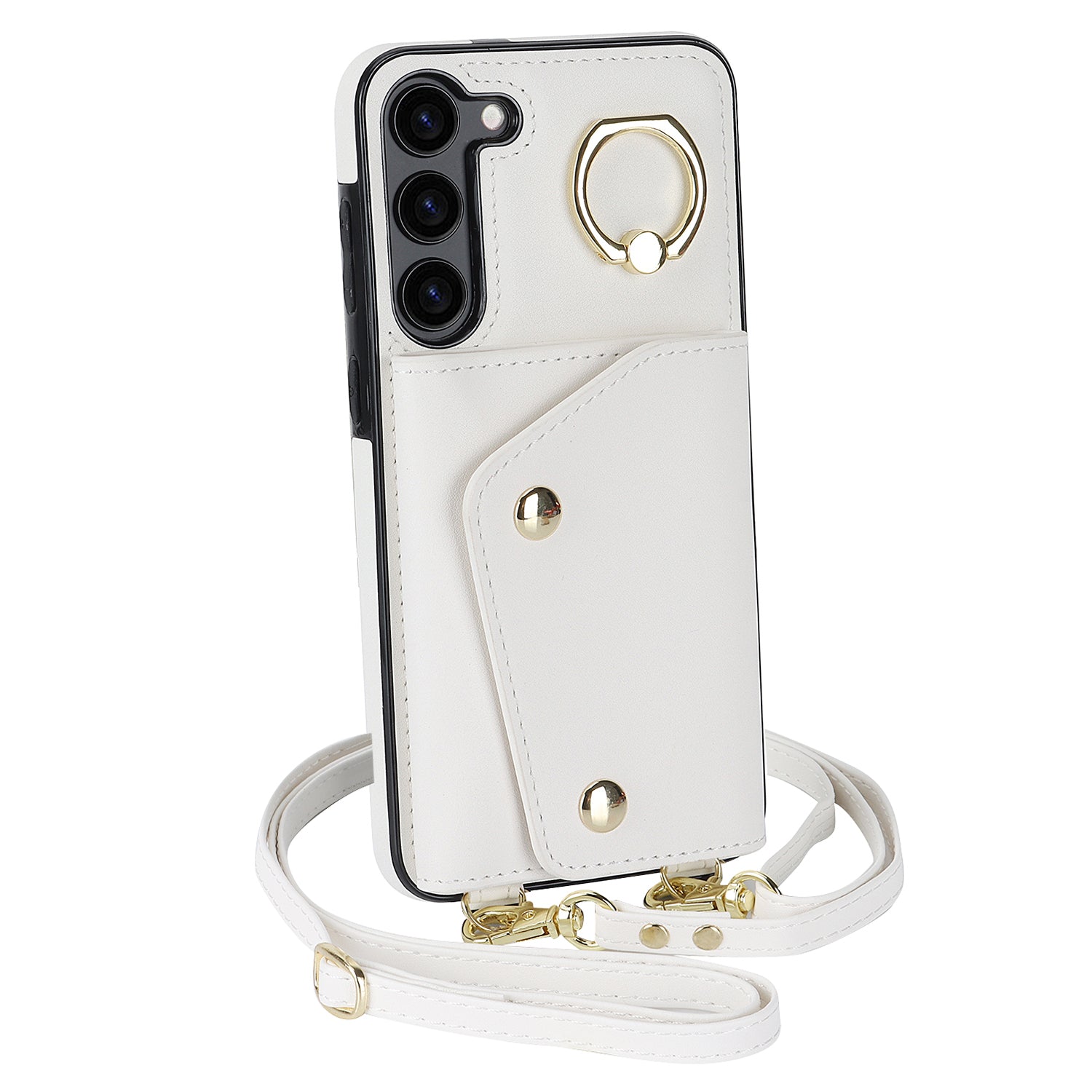 Crossbody Phone Case for Samsung Galaxy S23+ Kickstand Zipper Wallet PU Leather Coated TPU Cover