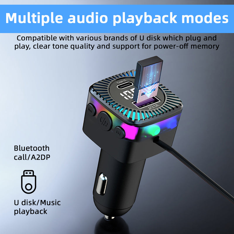 CS5 Super Fast Car Charger Bluetooth 5.3 MP3 Player, FM Transmitter Car Charger with 3-in-1 Charging Cable