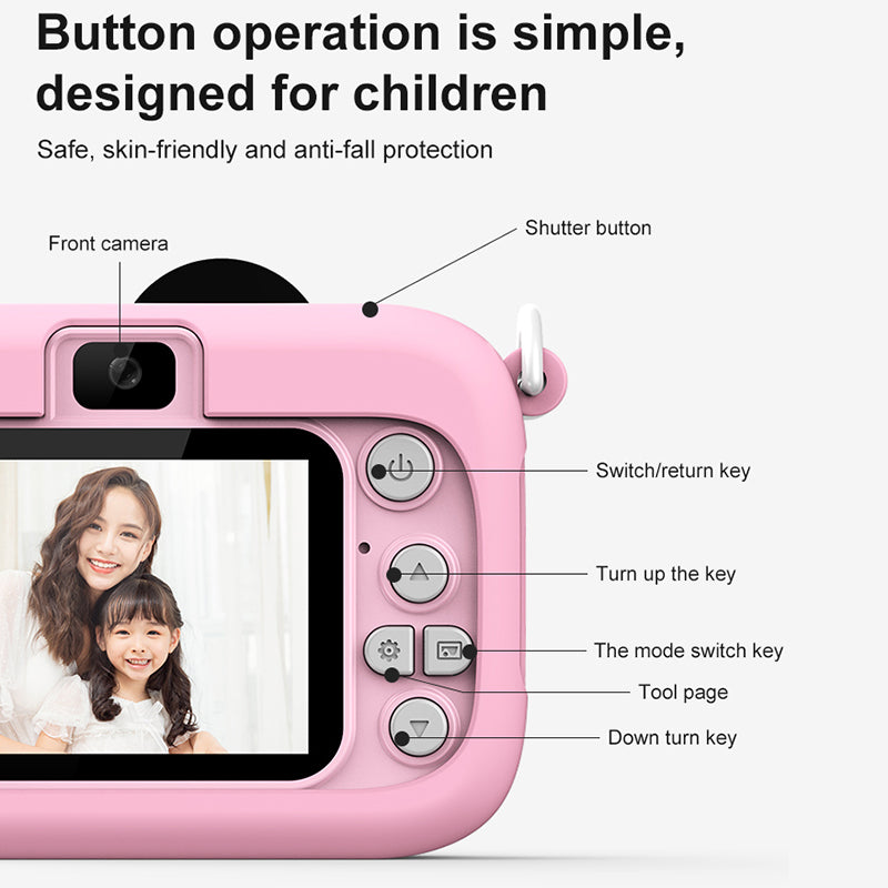 Equipped with high-resolution lens and 2-inch IPS screen, greatly improved the definition of photos. A good start camera for kids to learn about photography, also children can play games on the camera. Help to stimulate kids' creativity and imagination, cultivate their hobbies in photography and exercise their physical coordination.