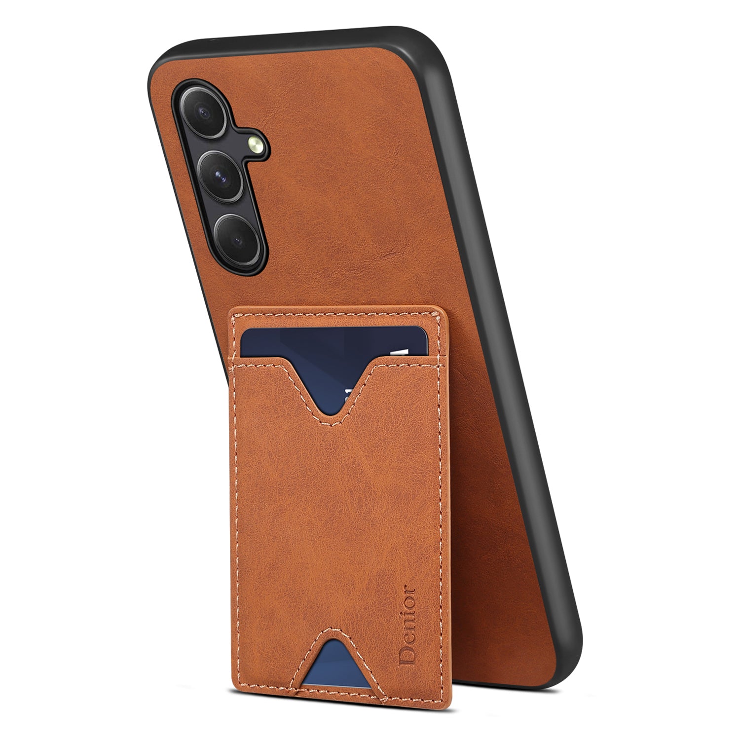 DENIOR PU Leather Coated TPU Cover for Samsung Galaxy A14 5G Kickstand Card Slot Phone Case