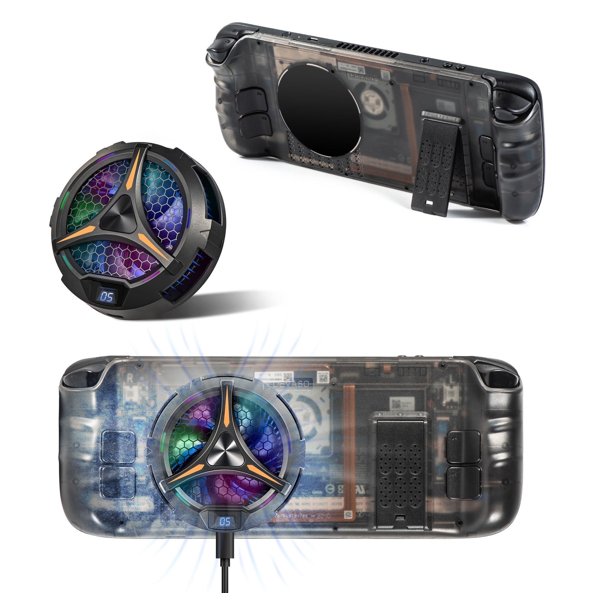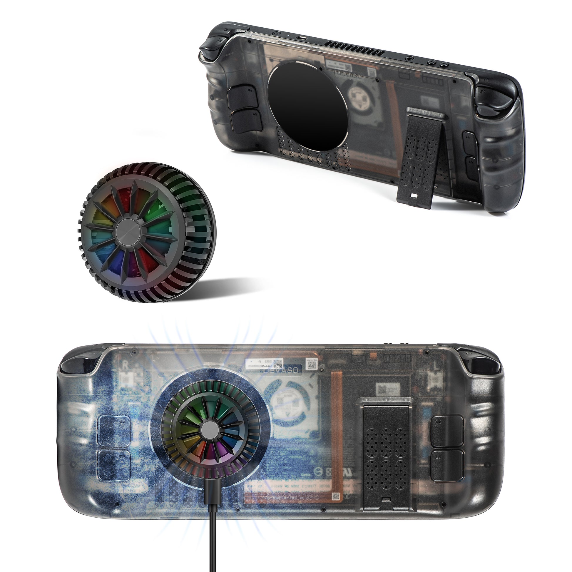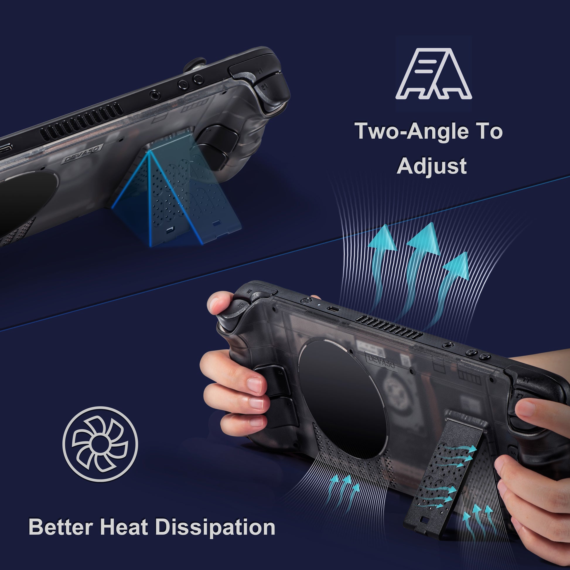 DEVASO For Steam Deck ABS Replace Back Plate Heat Dissipation Game Console Kickstand Back Cover (Upgraded 3.0 Version)