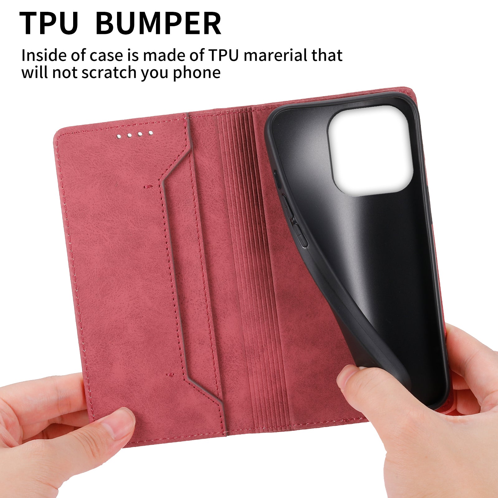 DF-05 For iPhone 14 Pro Leather Phone Case Protector Cover RFID Blocking Wallet Stand Shell