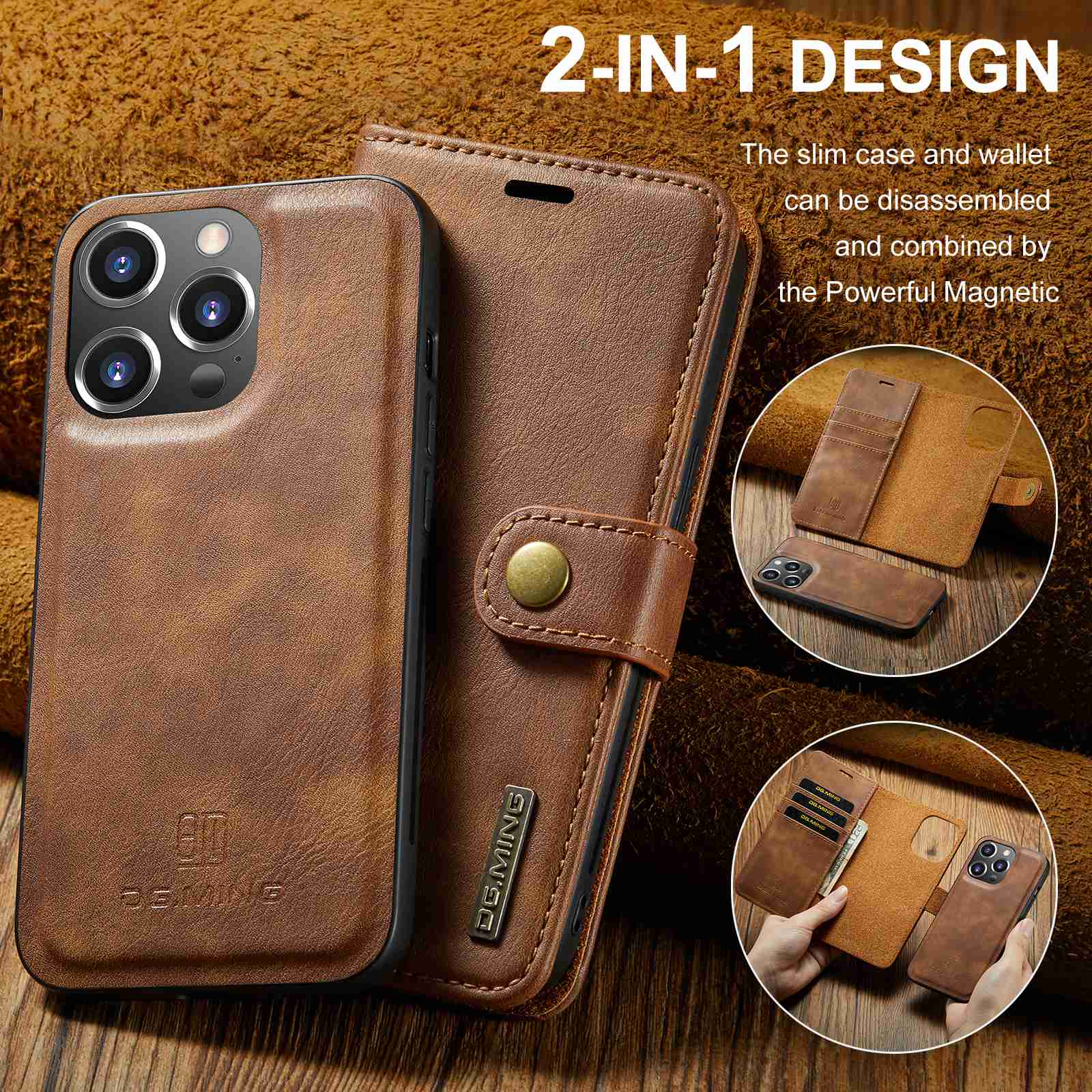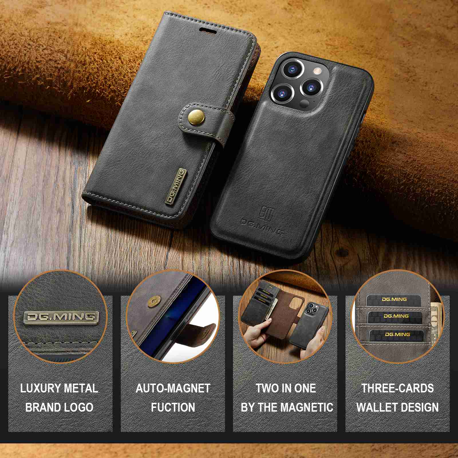 DG.MING For iPhone 14 Pro Max 6.7 inch Wallet Magnetic Detachable Case Split Leather Stand Flip Phone Cover