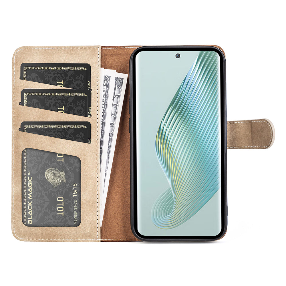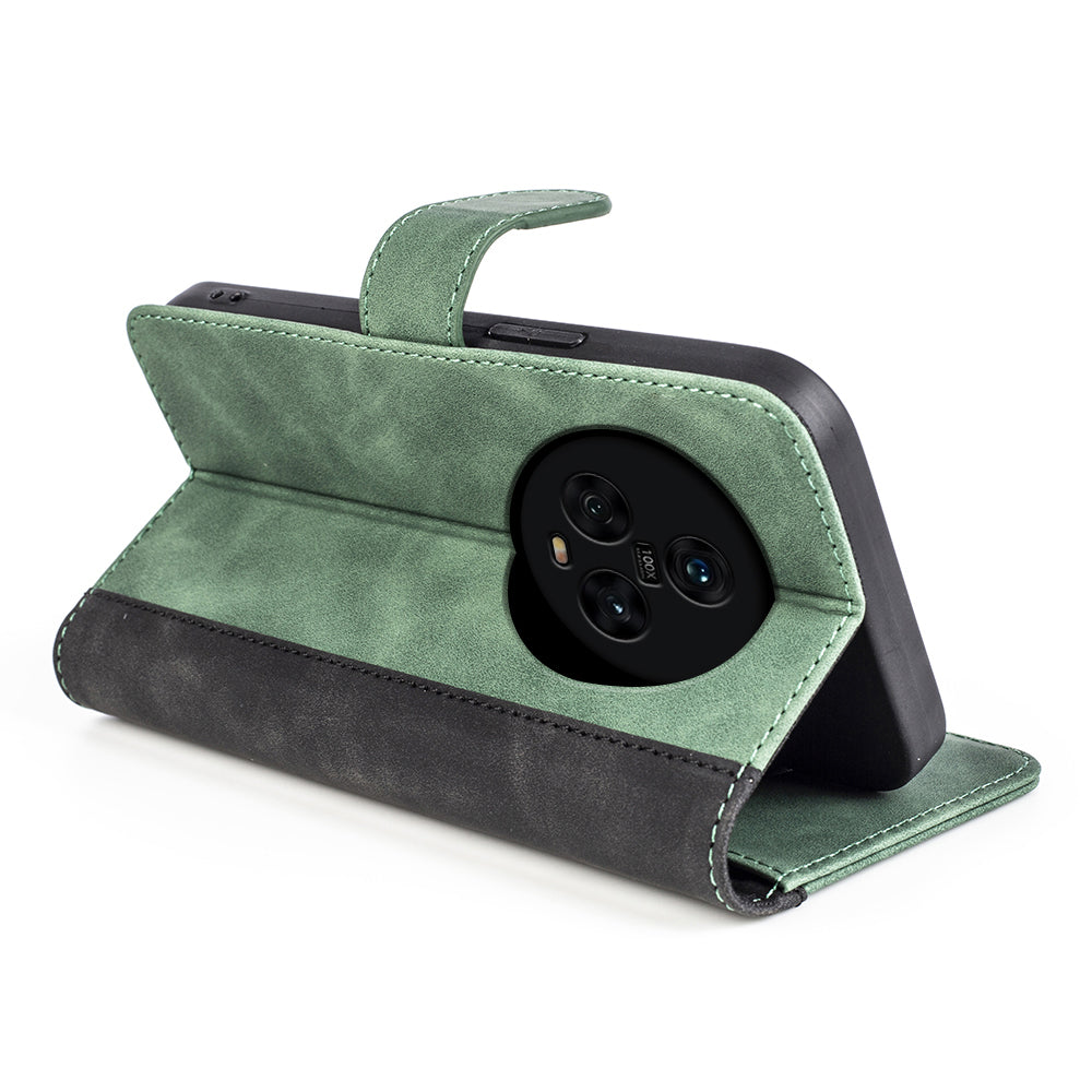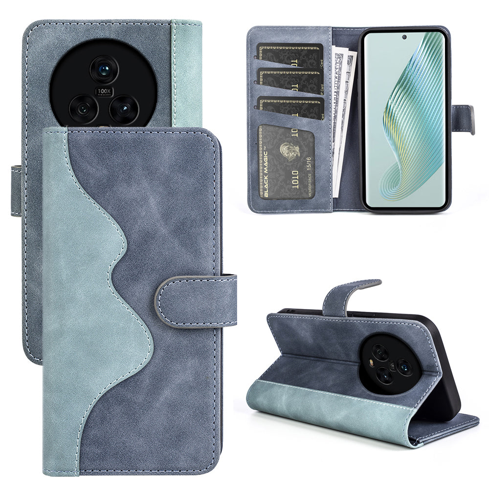 Dual Color Phone Shell for Honor Magic5 Splicing Leather Wallet Anti-Drop Cover Flip Stand Phone Case