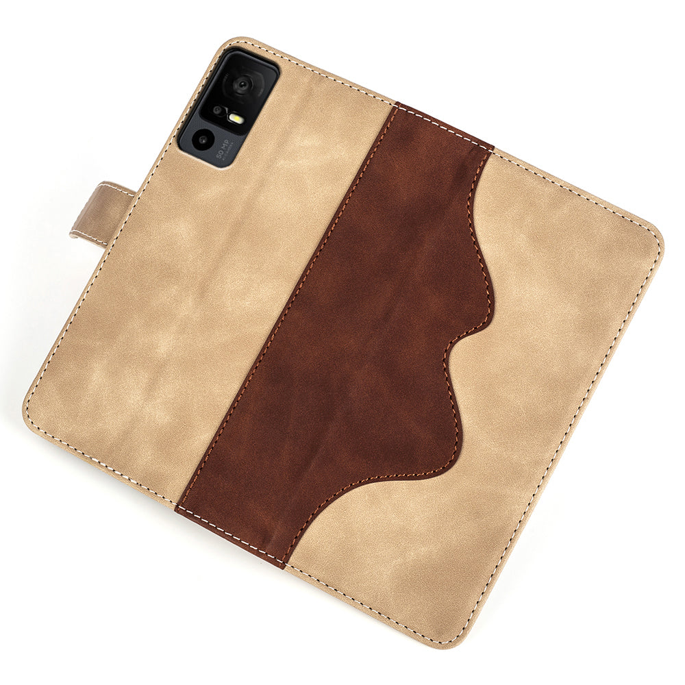 Dual Color Phone Shell for TCL 40R 5G , Splicing Leather Wallet Anti-drop Cover Flip Stand Phone Case