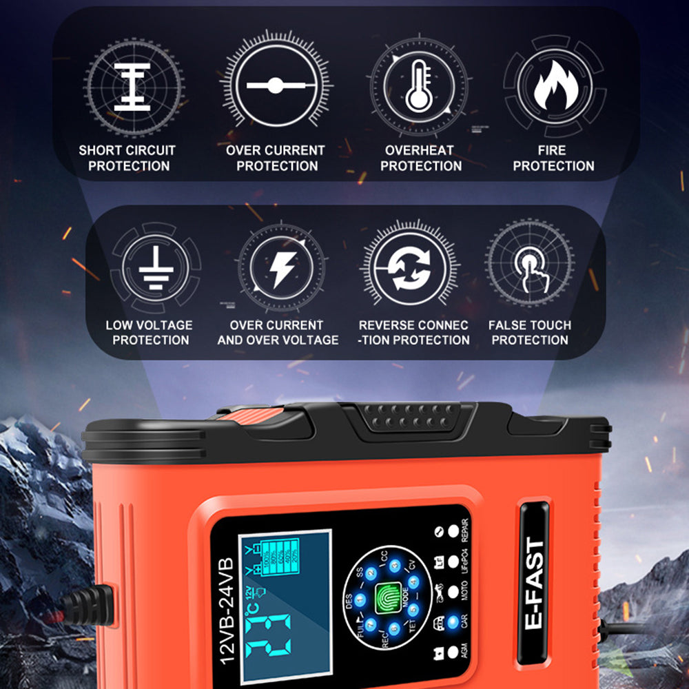 E-FAST TK500 12V / 24V 7-Stage Intelligent Battery Charger Car Truck Lead-Acid Battery Restore Charger