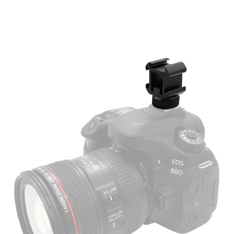 E039 Aluminum Alloy Three Head Cold Shoe Mount Adapter Expansion Bracket with Dual Screw Base