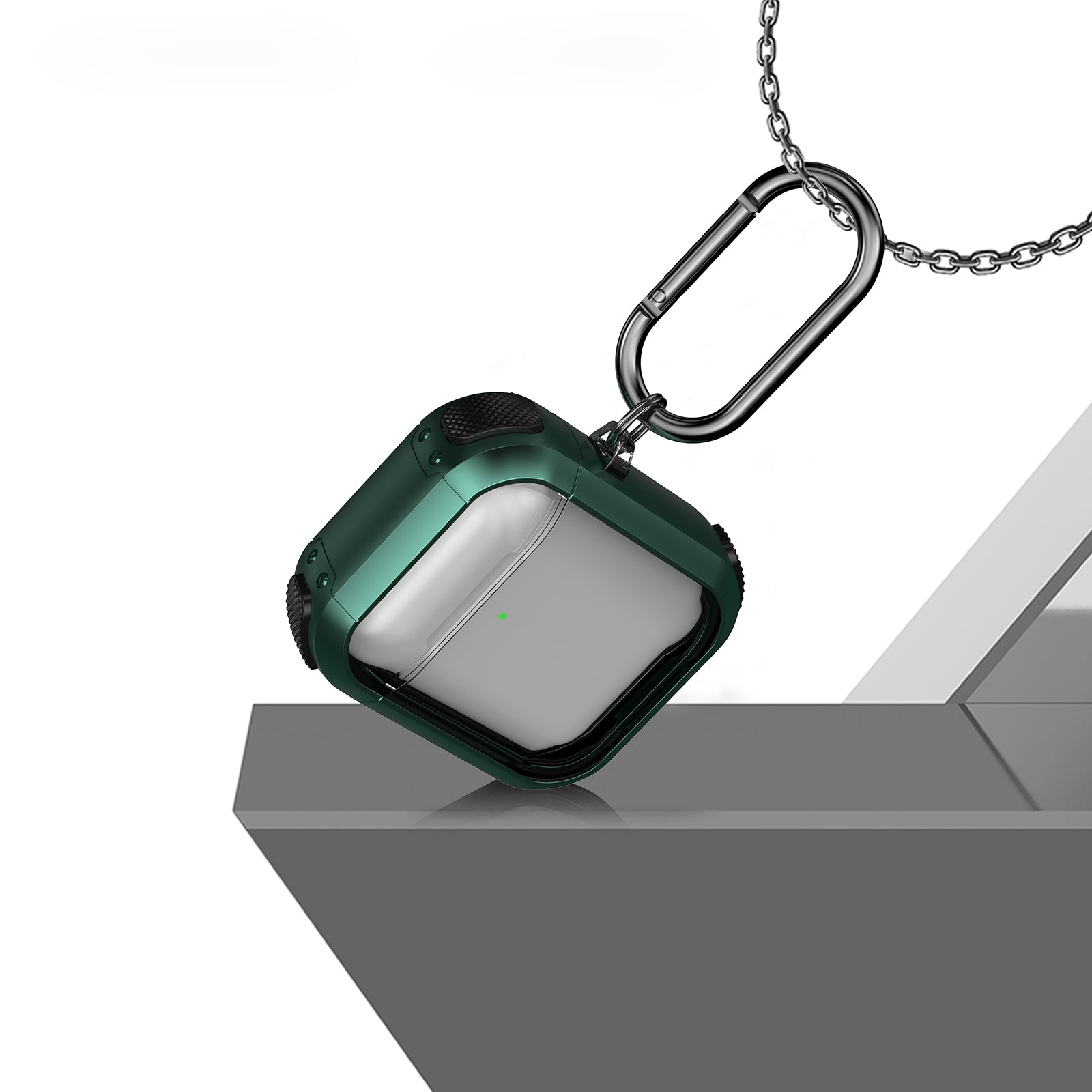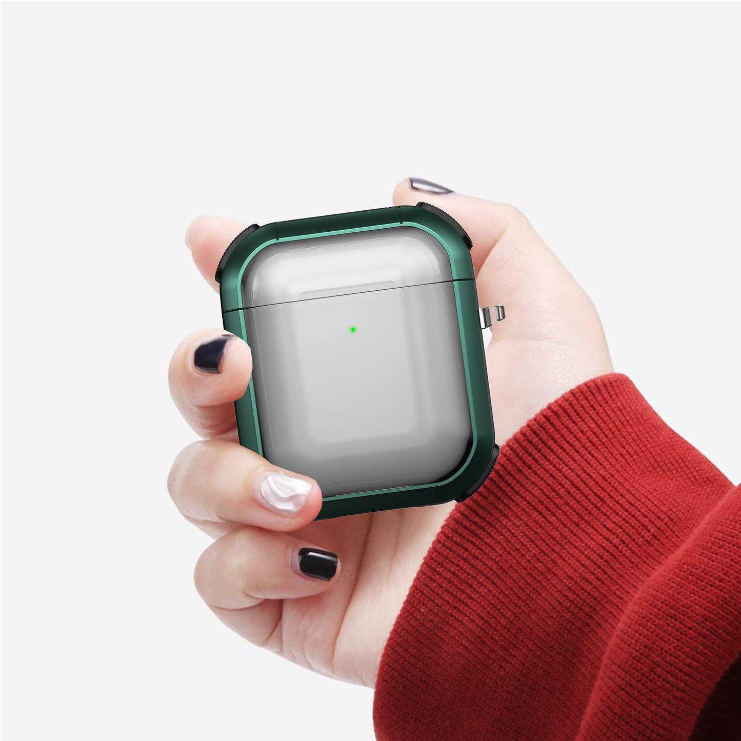 Earphone Case for Apple AirPods with Charging Case (2016) / (2019) / AirPods with Wireless Charging Case (2019) PC+TPU Clear Cover with Carabiner
