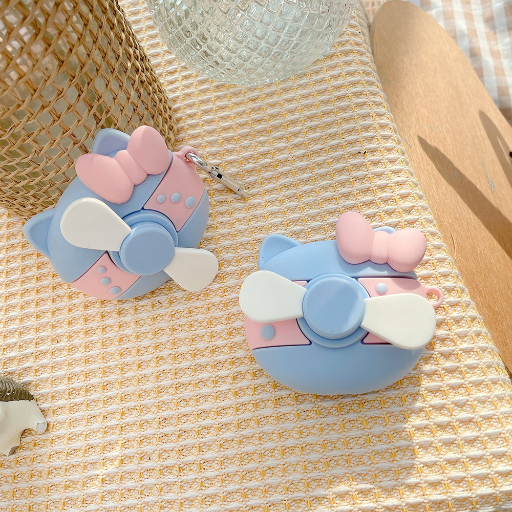 Earphones Case for Apple AirPods 3 , Rotary Fan Design Bluetooth Earbud Silicone Cover with Carabiner