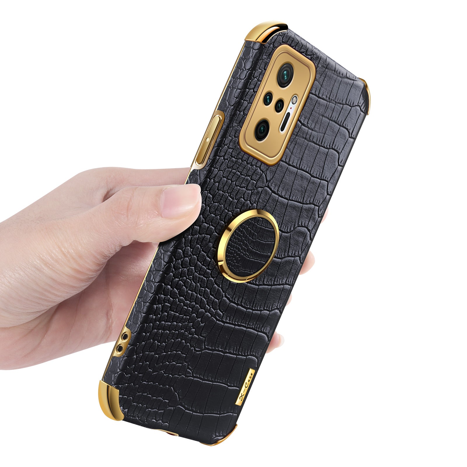 Electroplating Design Crocodile Texture PU Leather Coated TPU Precise Cutout Case Cover with Ring Holder for Xiaomi Redmi Note 10 Pro