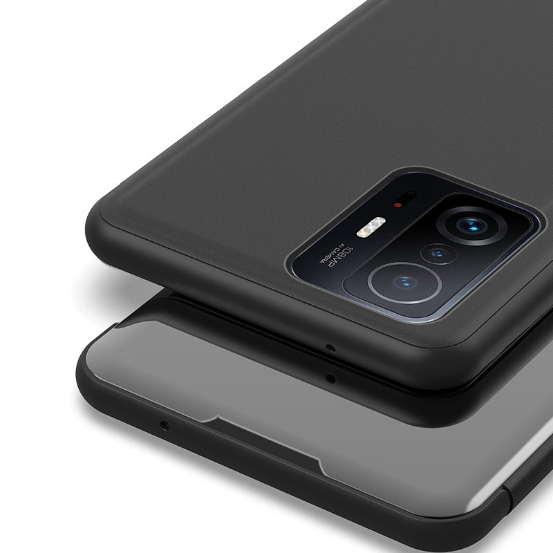 Electroplating Mirror Surface Leather Flip Case Protector with Stand and View Window for Xiaomi 11T/11T Pro