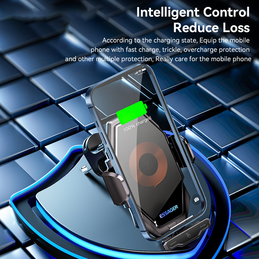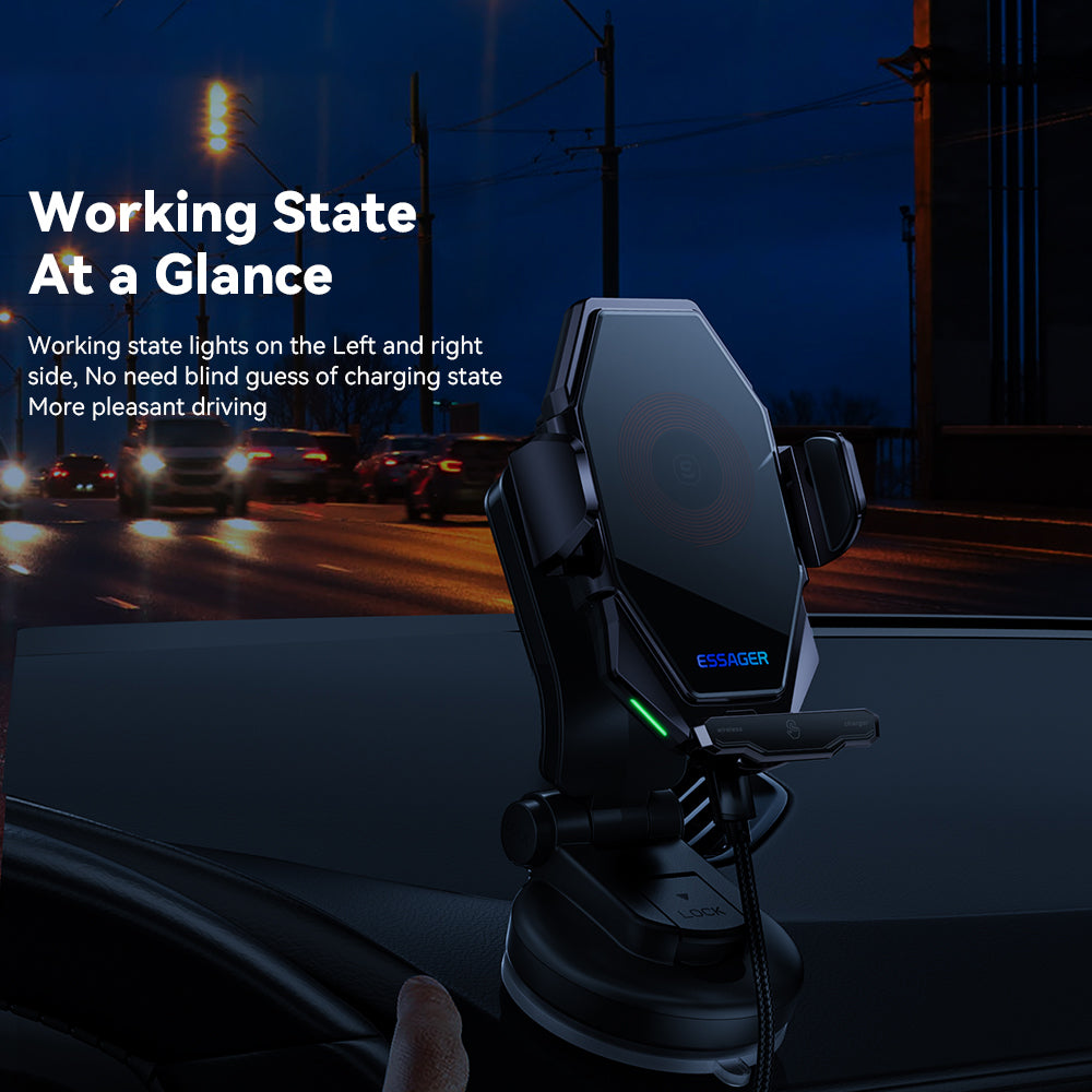ESSAGER 15W Wireless Charger Phone Mount 360-Degree Rotating Dashboard Car Charger Holder