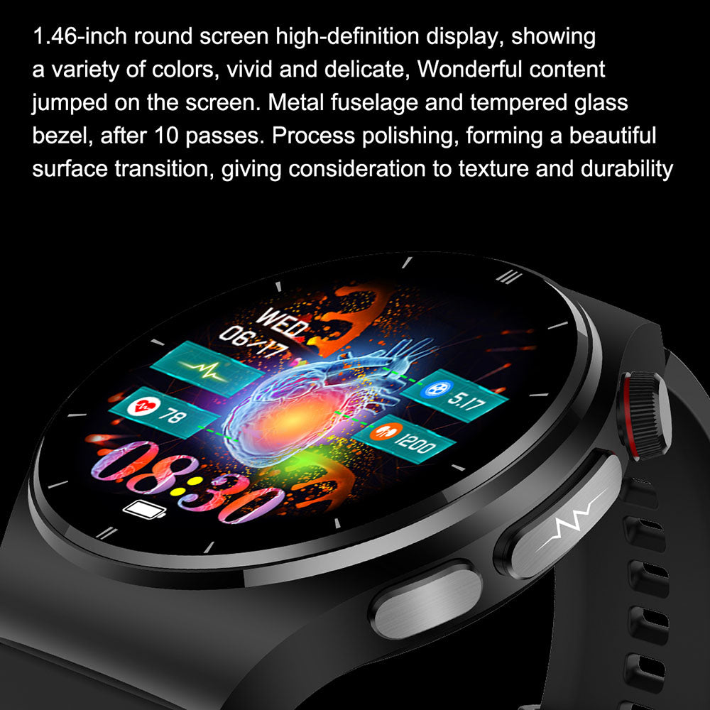 - Features: ECG electrocardiogram function, Bluetooth call, blood glucose measurement, uric acid measurement, blood lipid monitoring, HRV-AI medical diagnosis, body temperature monitoring, blood oxygen monitoring, SOS emergency call function, breathing rate, heart rate monitoring, blood pressure monitoring, sleep monitoring, long-term Sit reminder and other health functions