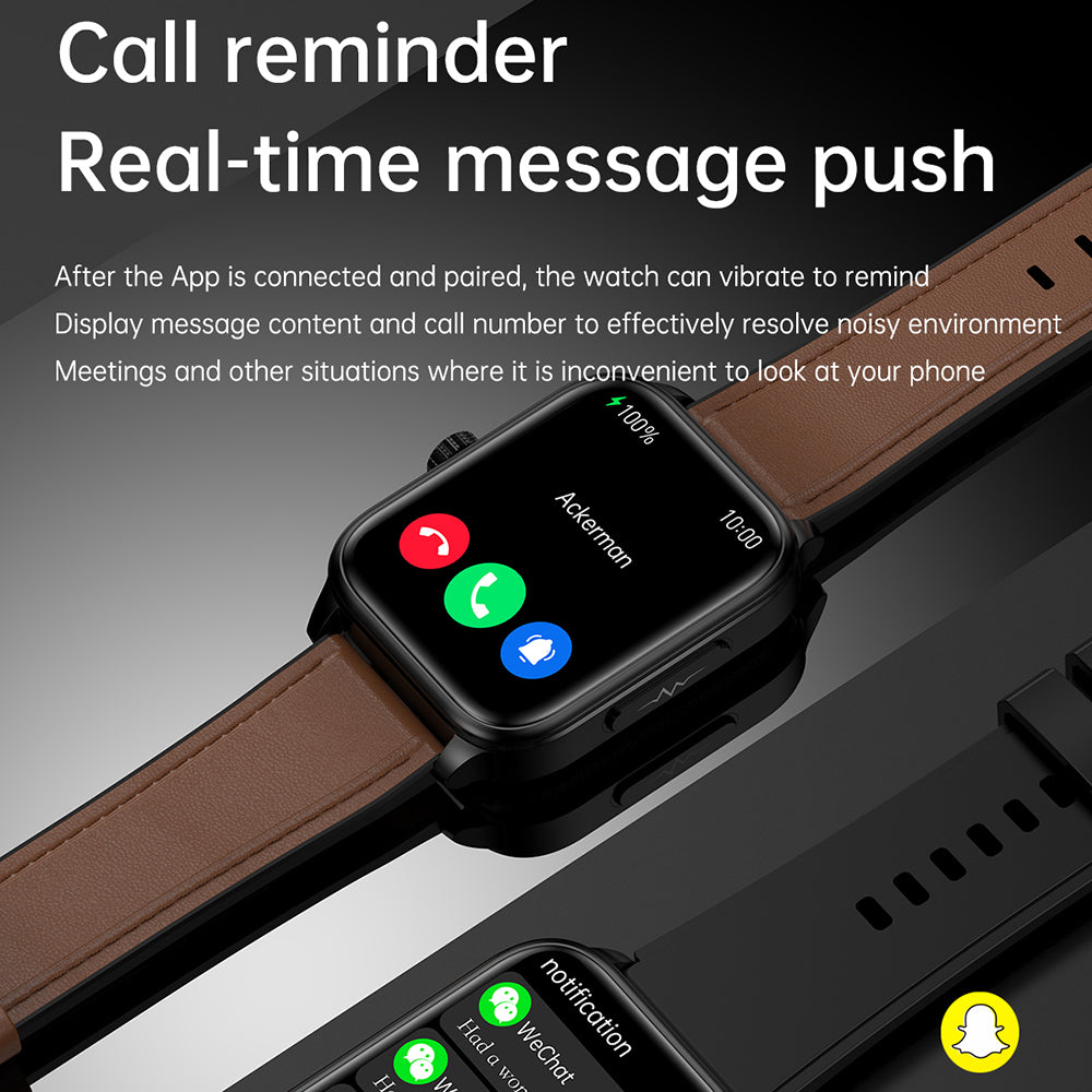 - Call Reminder Real-time Message Push: After the App is connected and paired, the watch can vibrate to remind. Display message content and call number to effectively resolve noisy environment meetings and other situations where it is inconvenient to look at your phone