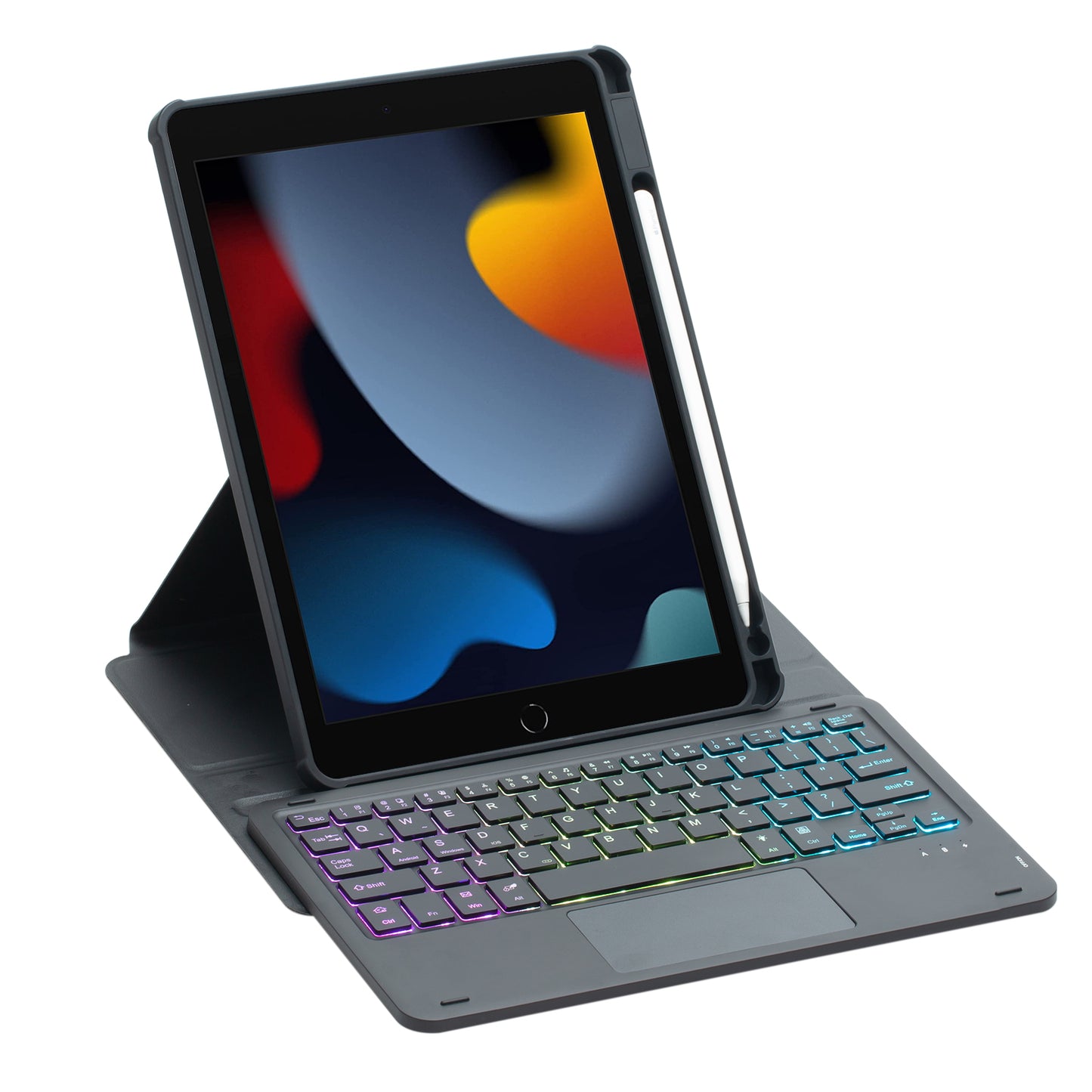 F102B-AS For iPad 10.2 (2019) / (2020) / (2021) / iPad Air 10.5 inch (2019) / iPad Pro 10.5-inch (2017) Leather Stand Tablet Case with Touchpad Backlight Wireless Keyboard