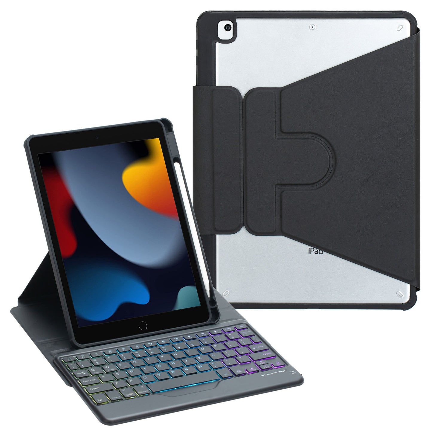 F102BS For iPad 10.2 (2019) / (2020) / (2021) / iPad Air 10.5 inch (2019) / iPad Pro 10.5-inch (2017) Triangle Stand Tablet Case with Backlight Detachable Keyboard