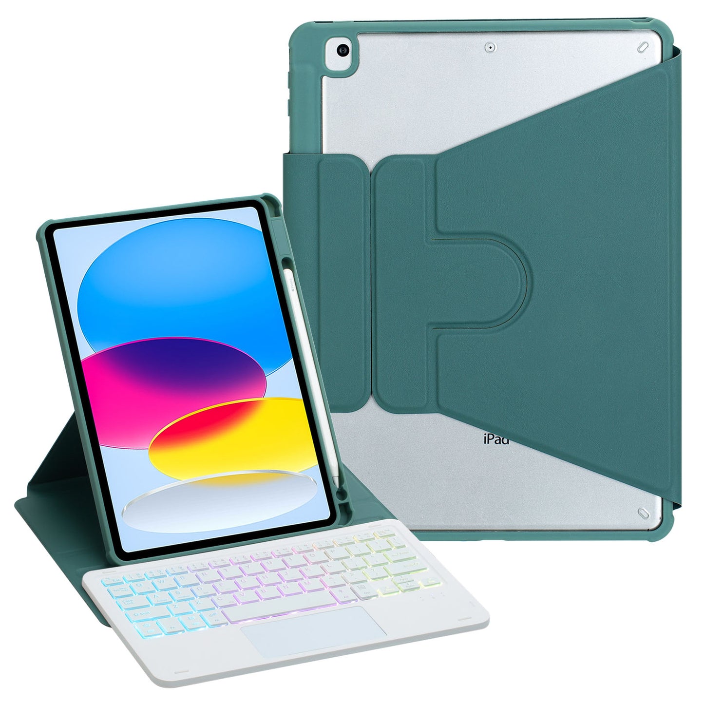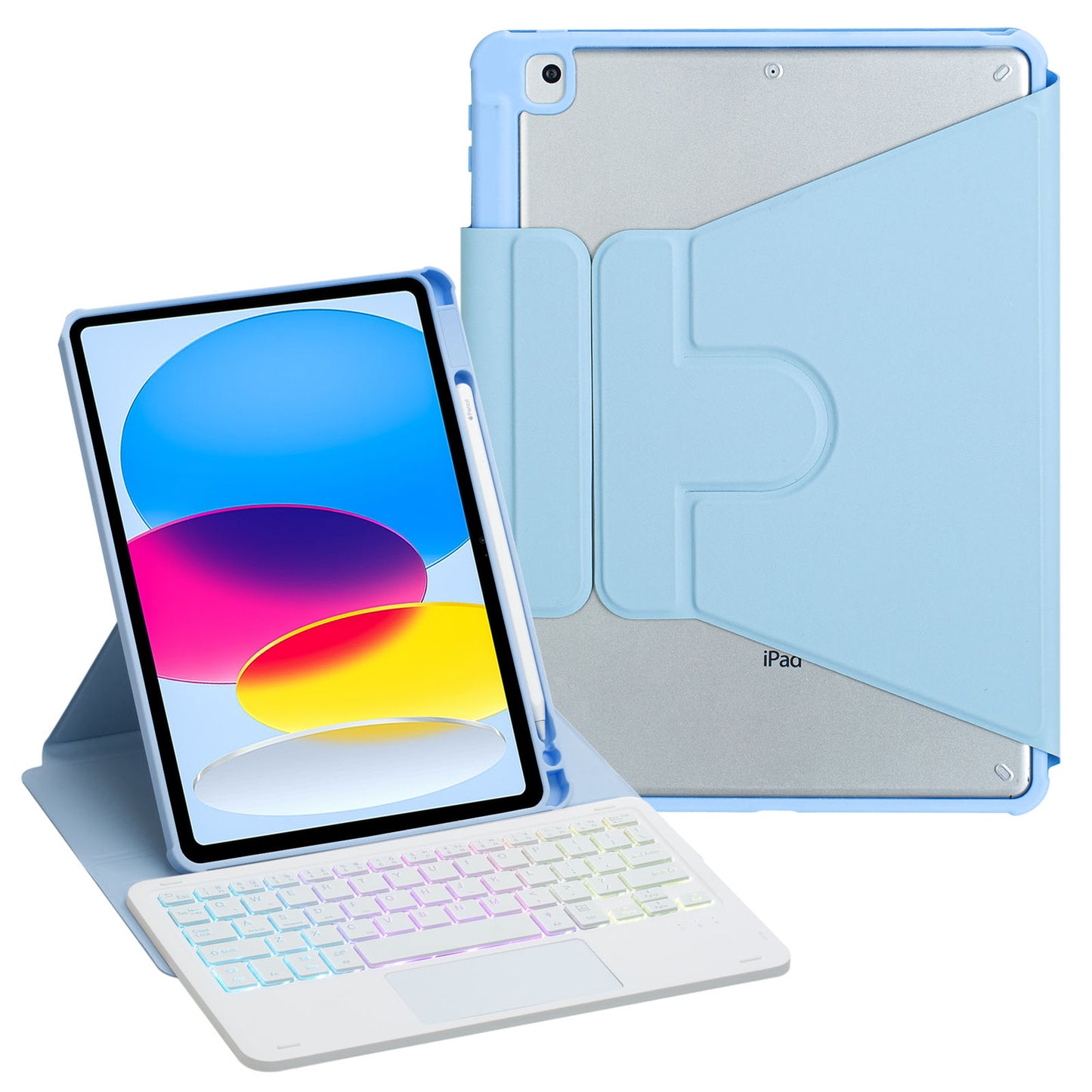 F10B-AS For iPad 10.9 (2022) PU Leather +Acrylic Tablet Case Stand Cover with Wireless Touchpad Backlit Keyboard