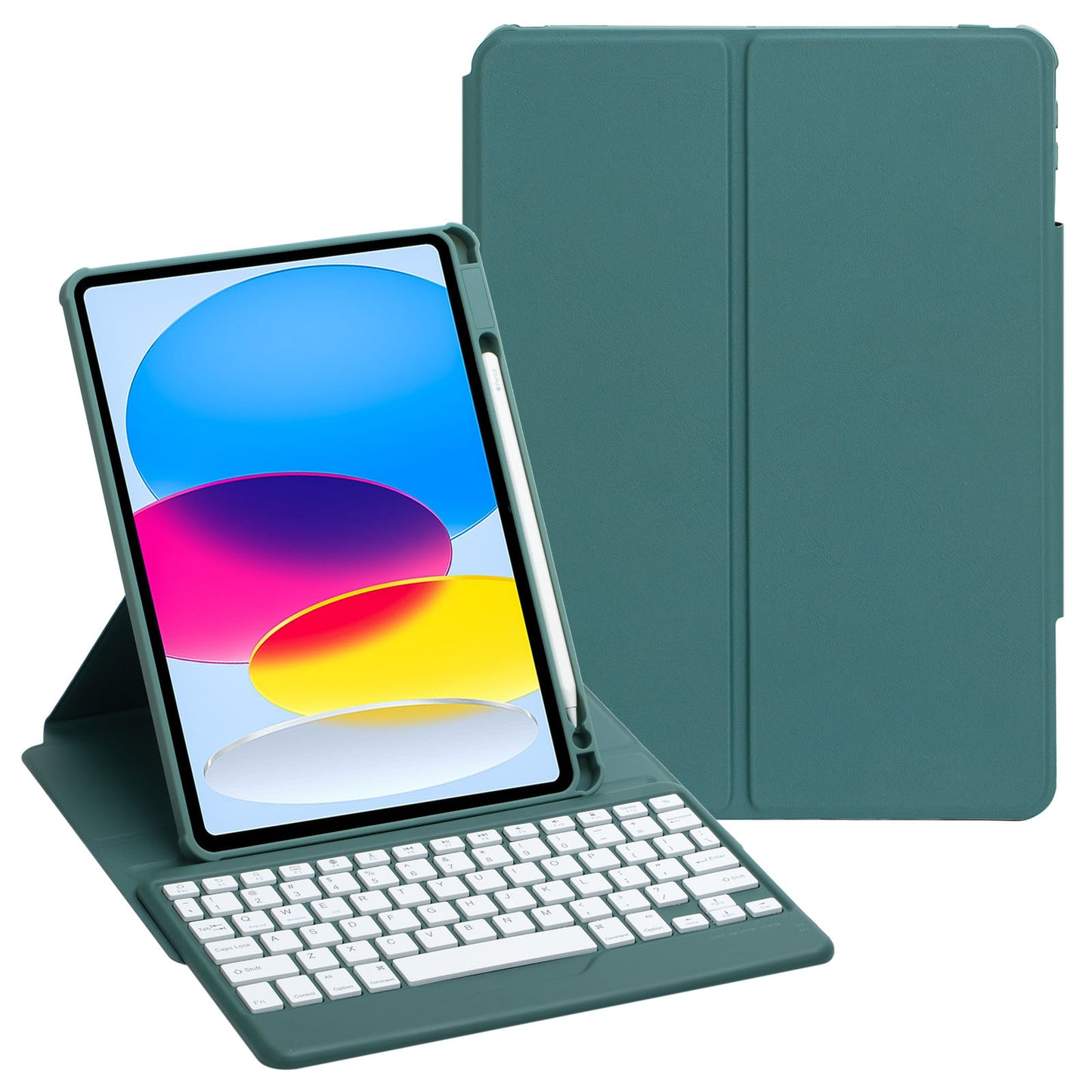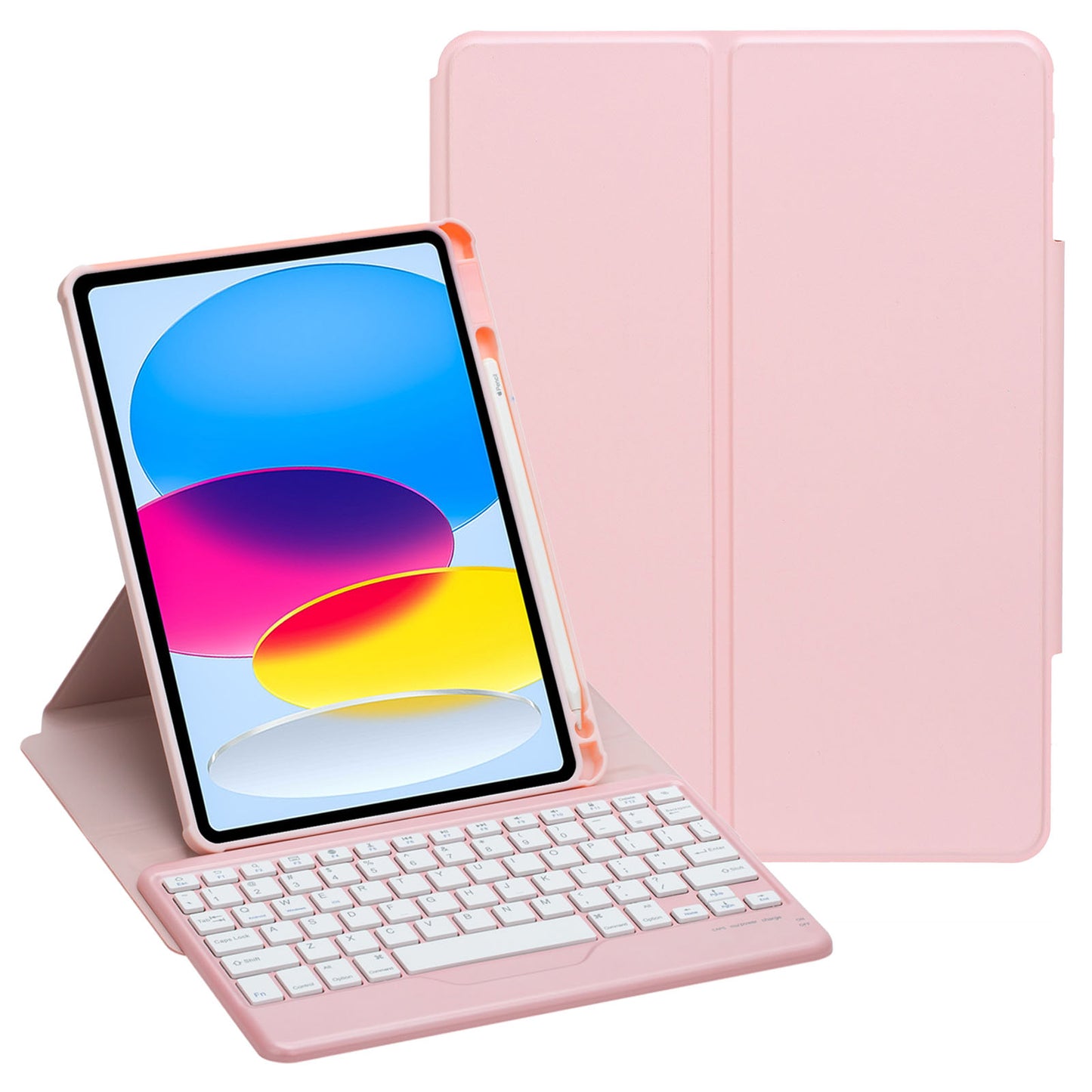 F10B Tablet Case for iPad 10.9 (2022) PU Leather Clear Acrylic Rotating Stand Cover + Wireless Bluetooth Keyboard with Pencil Holder
