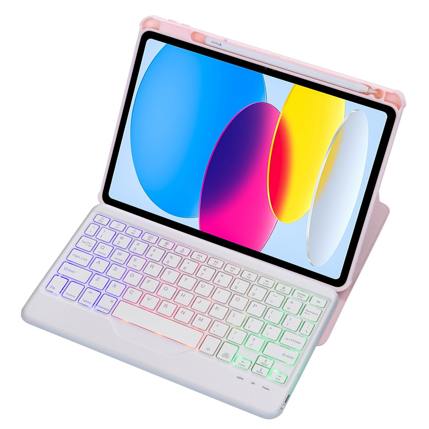 F10BS For iPad 10.9 (2022) PU Leather Tablet Case Triangle Stand Cover with Removable Wireless Backlight Keyboard