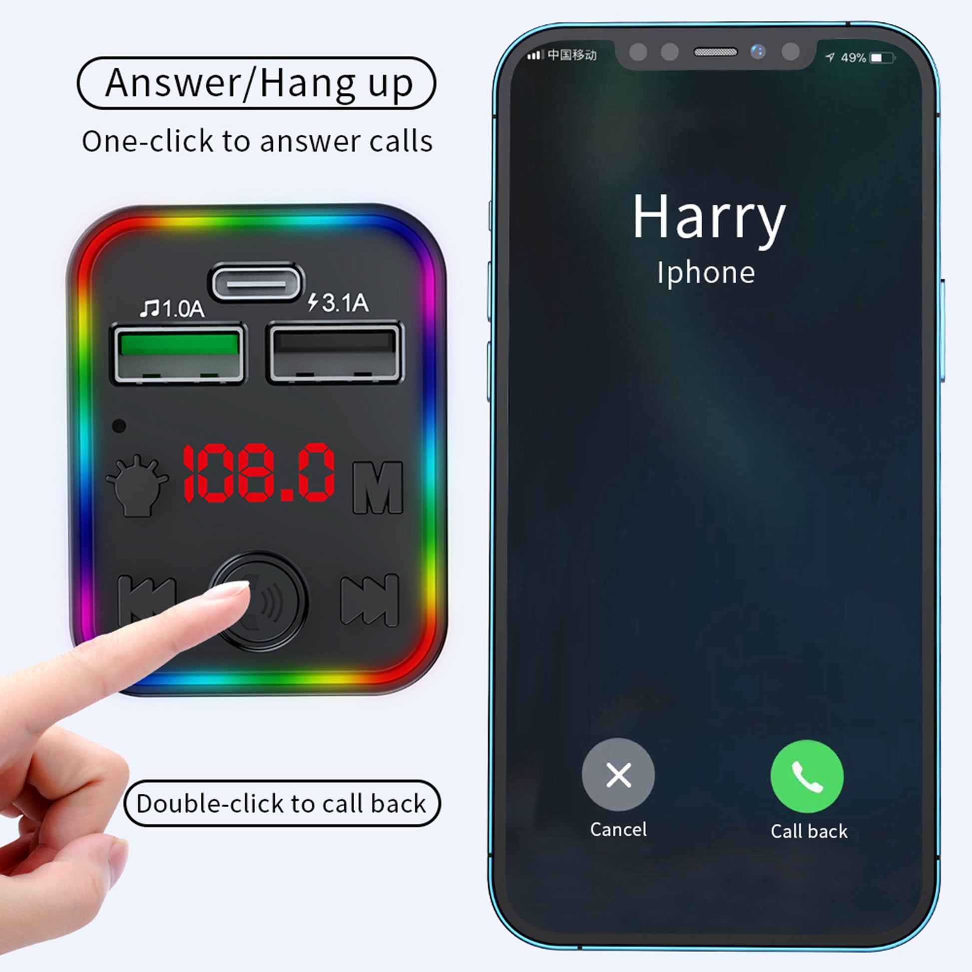 F22 7-Colors LED Wireless Car MP3 Player FM Dual USB Car Charger Smart Bluetooth Calling Car Audio Device