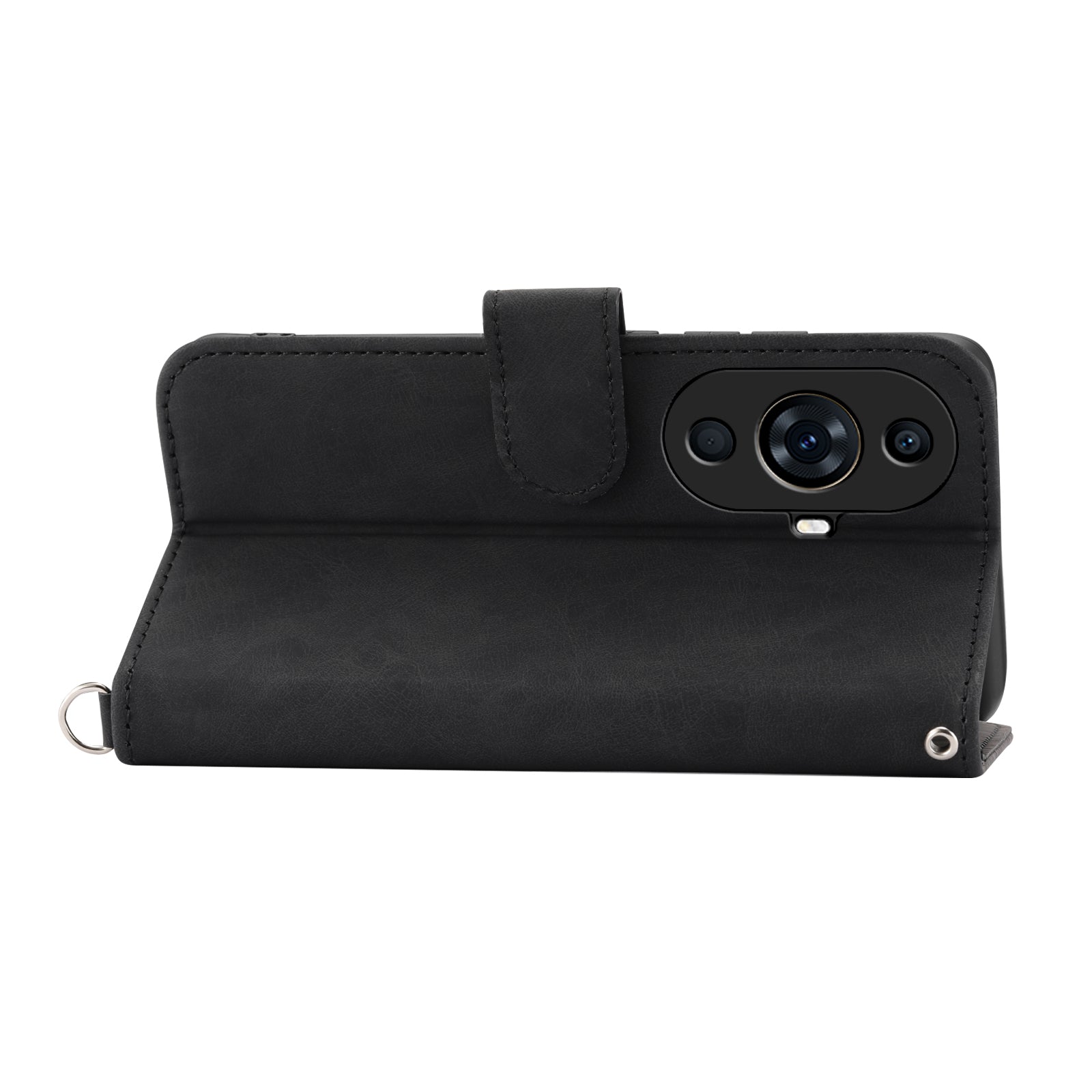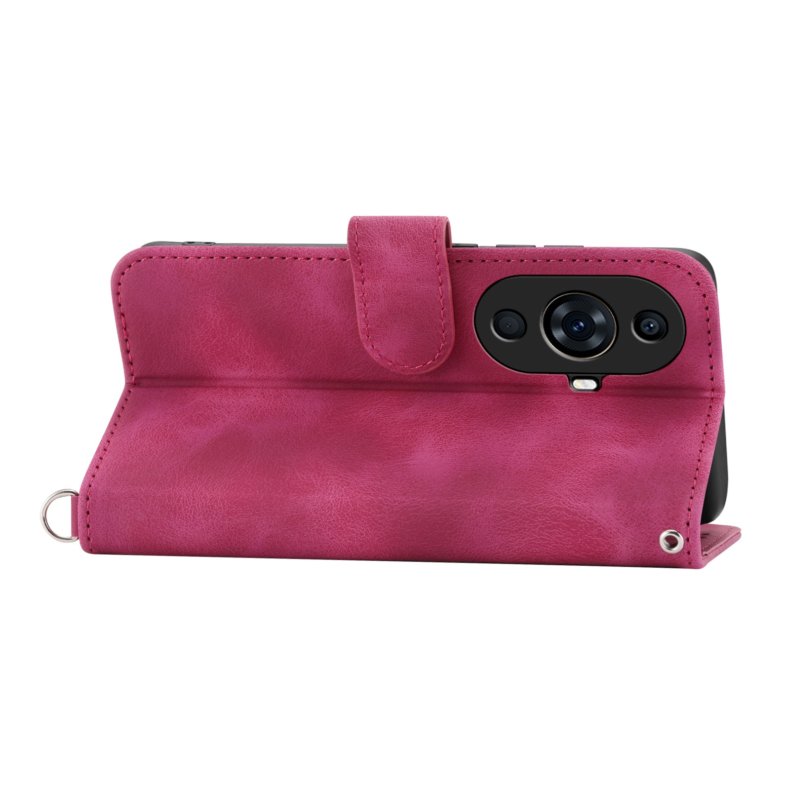 Flower Imprinted Phone Case for Huawei nova 11 Pro Skin-Touch Phone Shell Anti-Drop PU Leather Wallet Cover with Strap