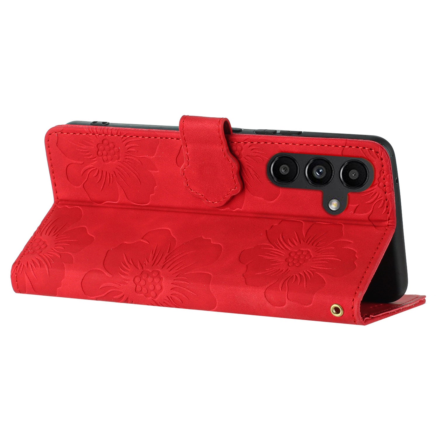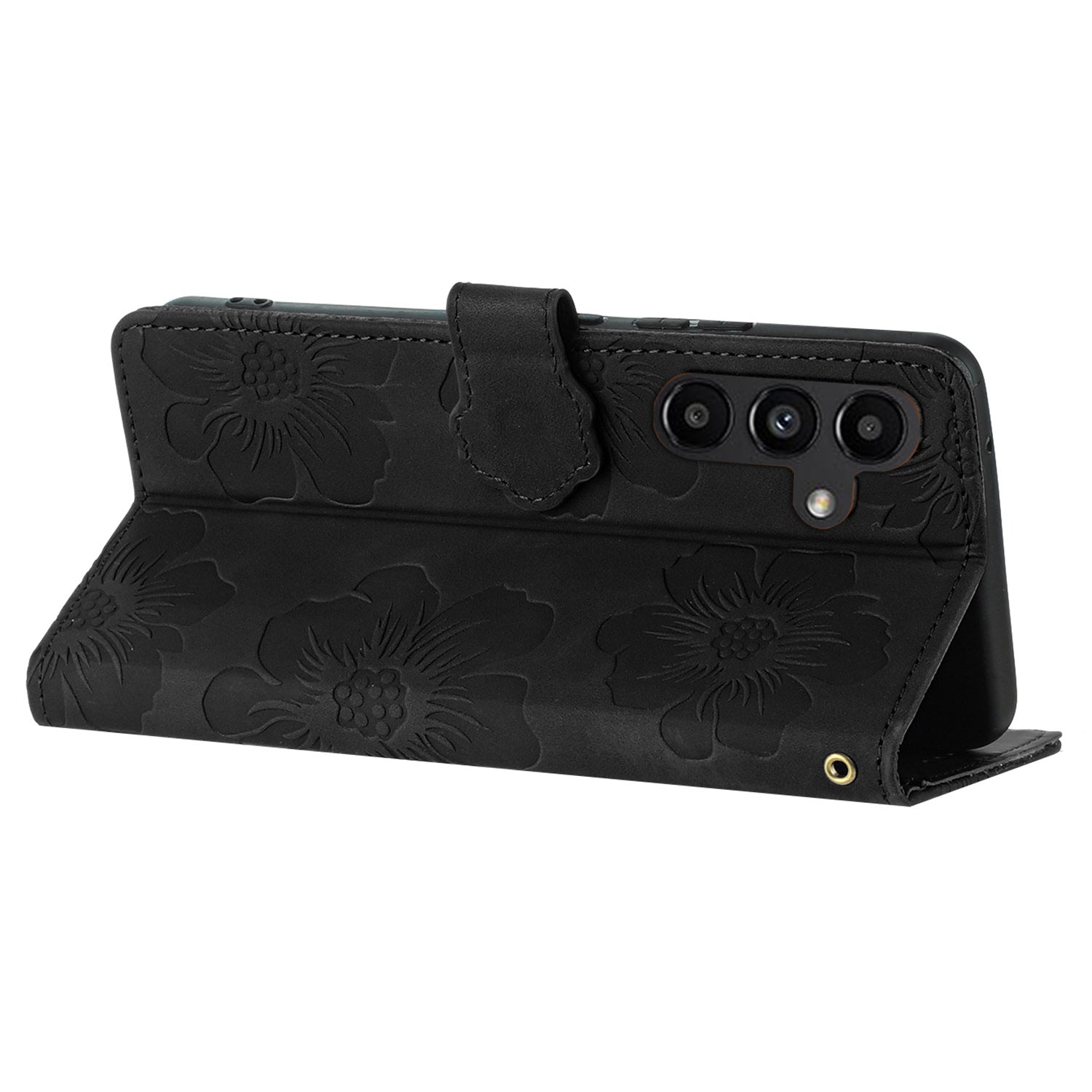 Flowers Imprinted Shell for Samsung Galaxy A13 5G Leather Phone Cover Wallet Stand Case with Strap
