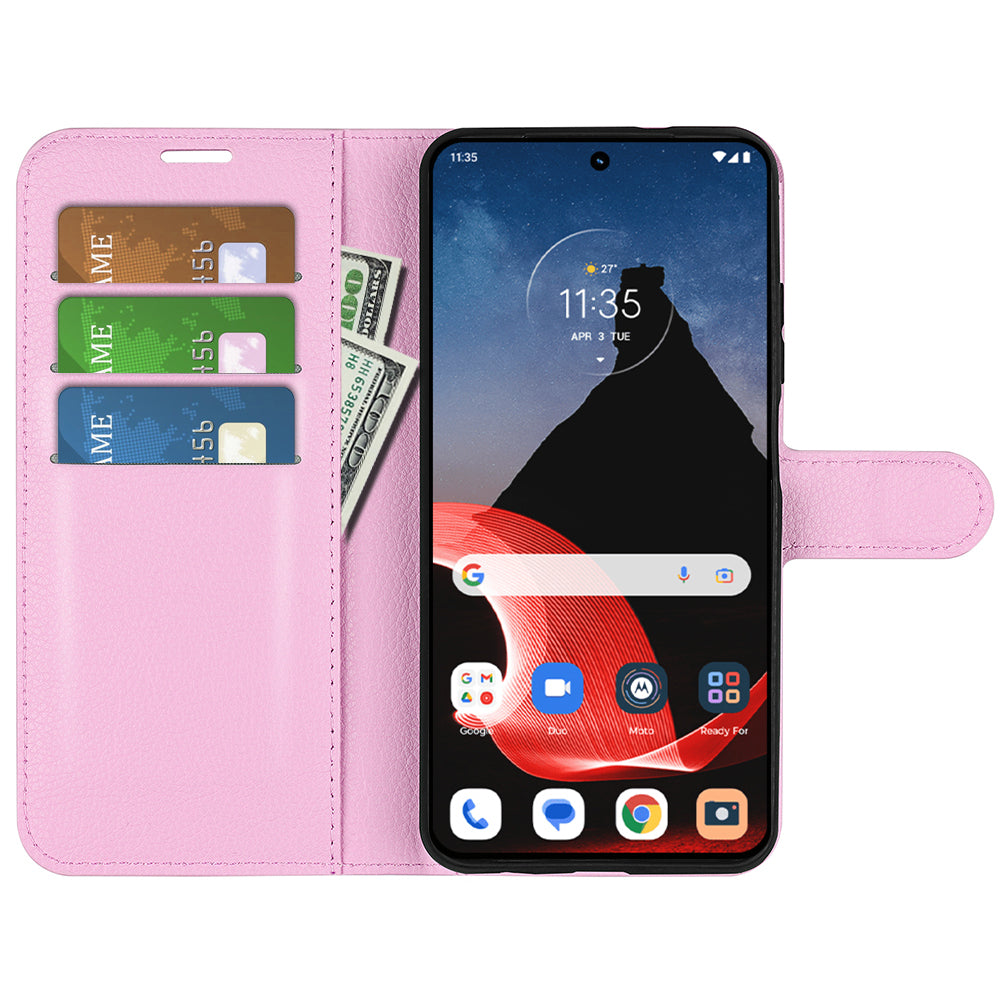 Foldable Stand Case for Motorola ThinkPhone 5G PU Leather Litchi Texture Wallet Folio Flip Phone Cover