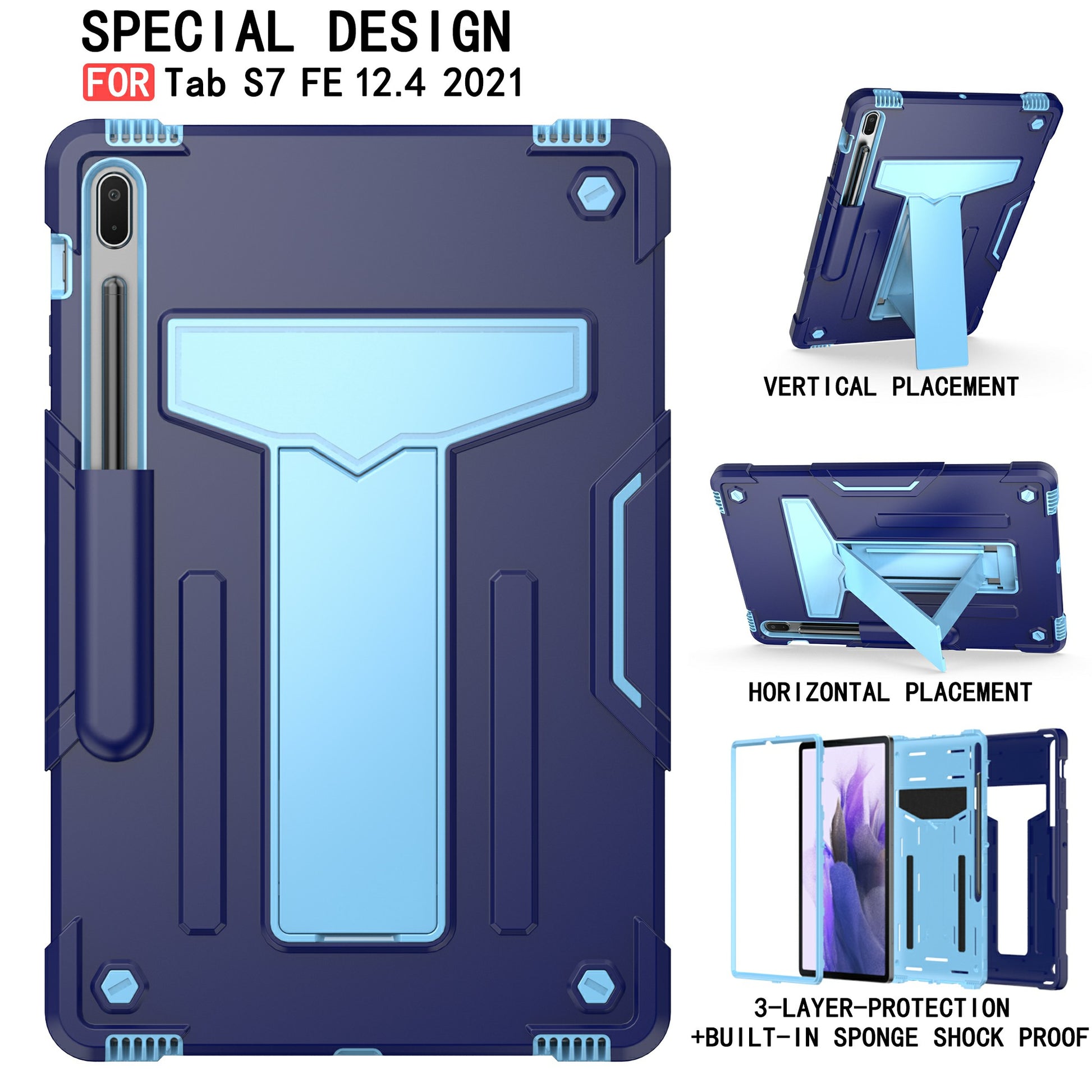 Foldable T-shaped Kickstand PC Silicone Shock-Proof Cover Protector for Samsung Galaxy Tab S7 FE