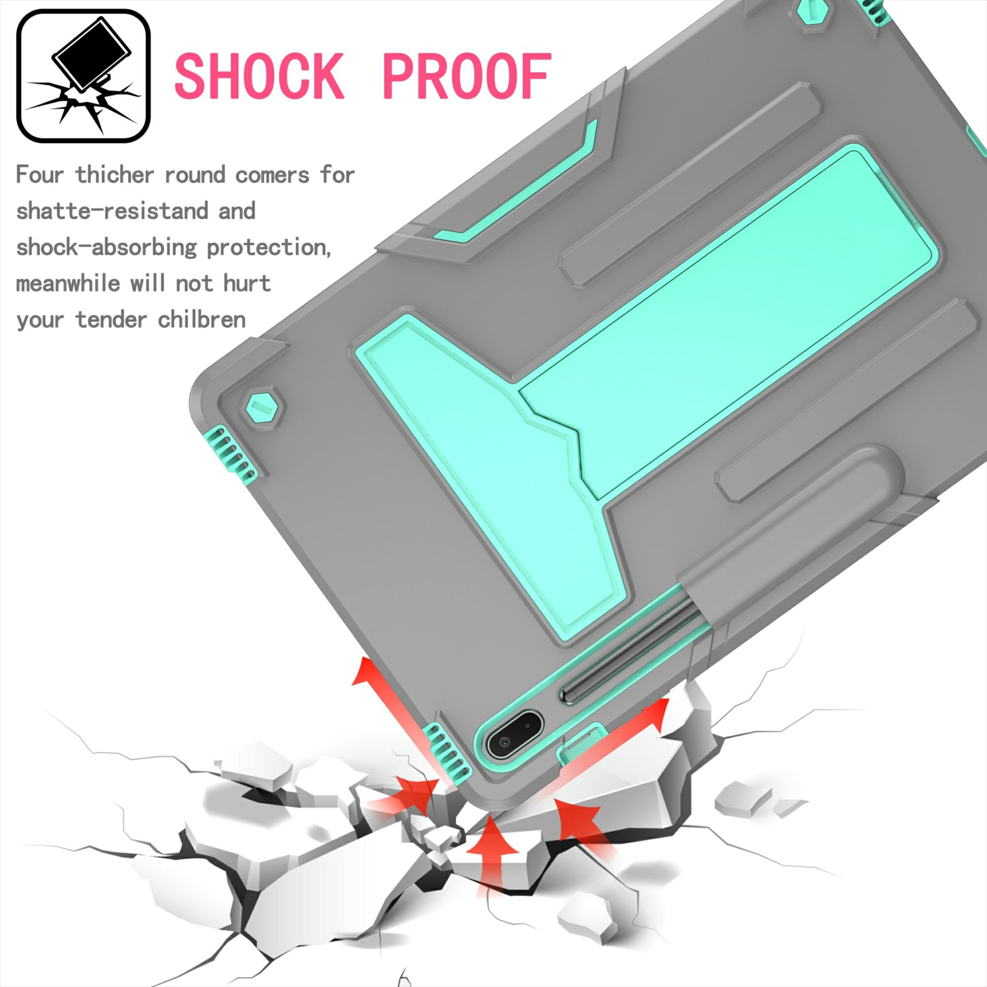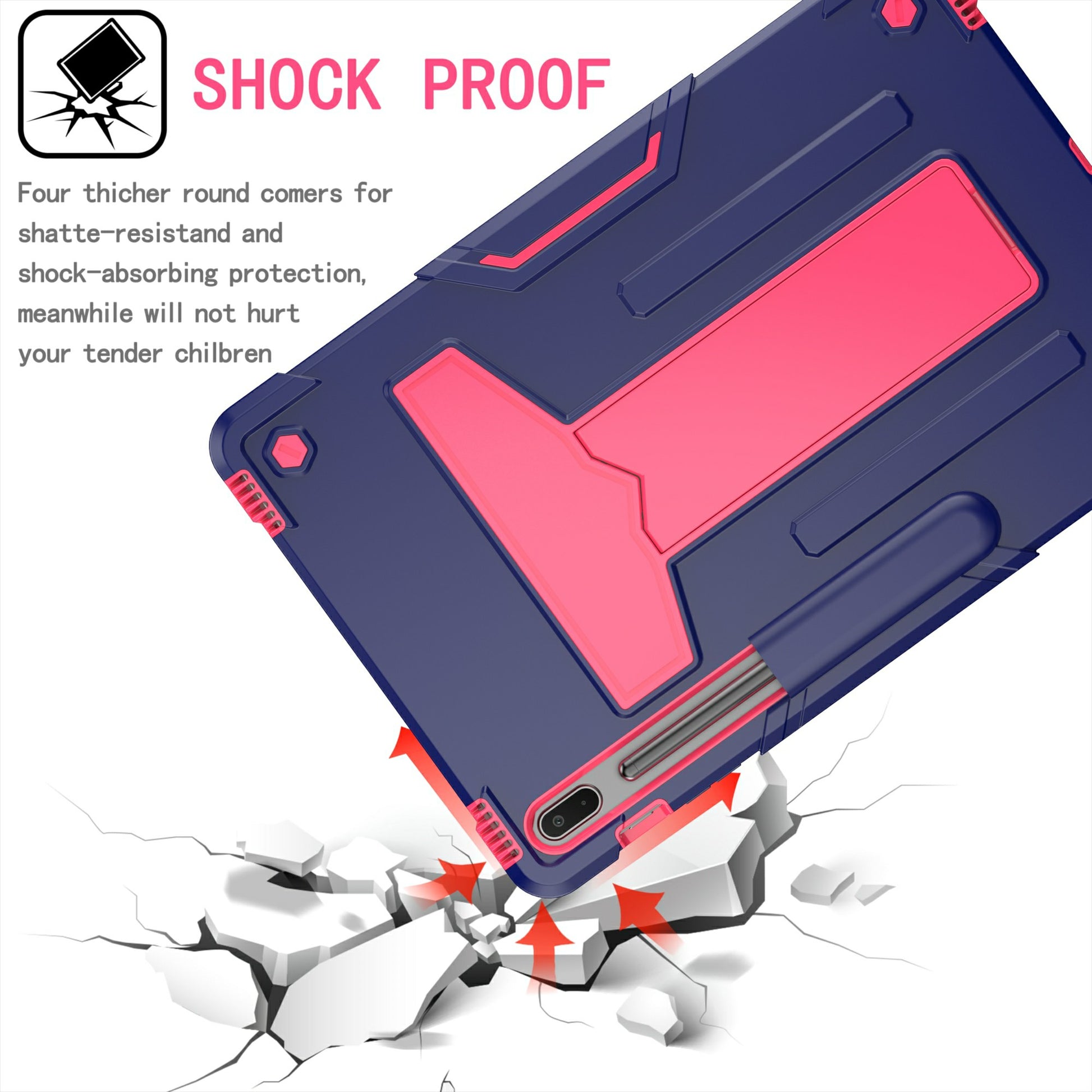 Impact resistant design and shock absorbing silicone + plastic materials fully cover back and edges, protecting against accidental drops and falls. Designed with a pen slot, convenient adjustable but sturdy kickstand fully free your hands when you're reading, watching and surfing the internet in your free time.