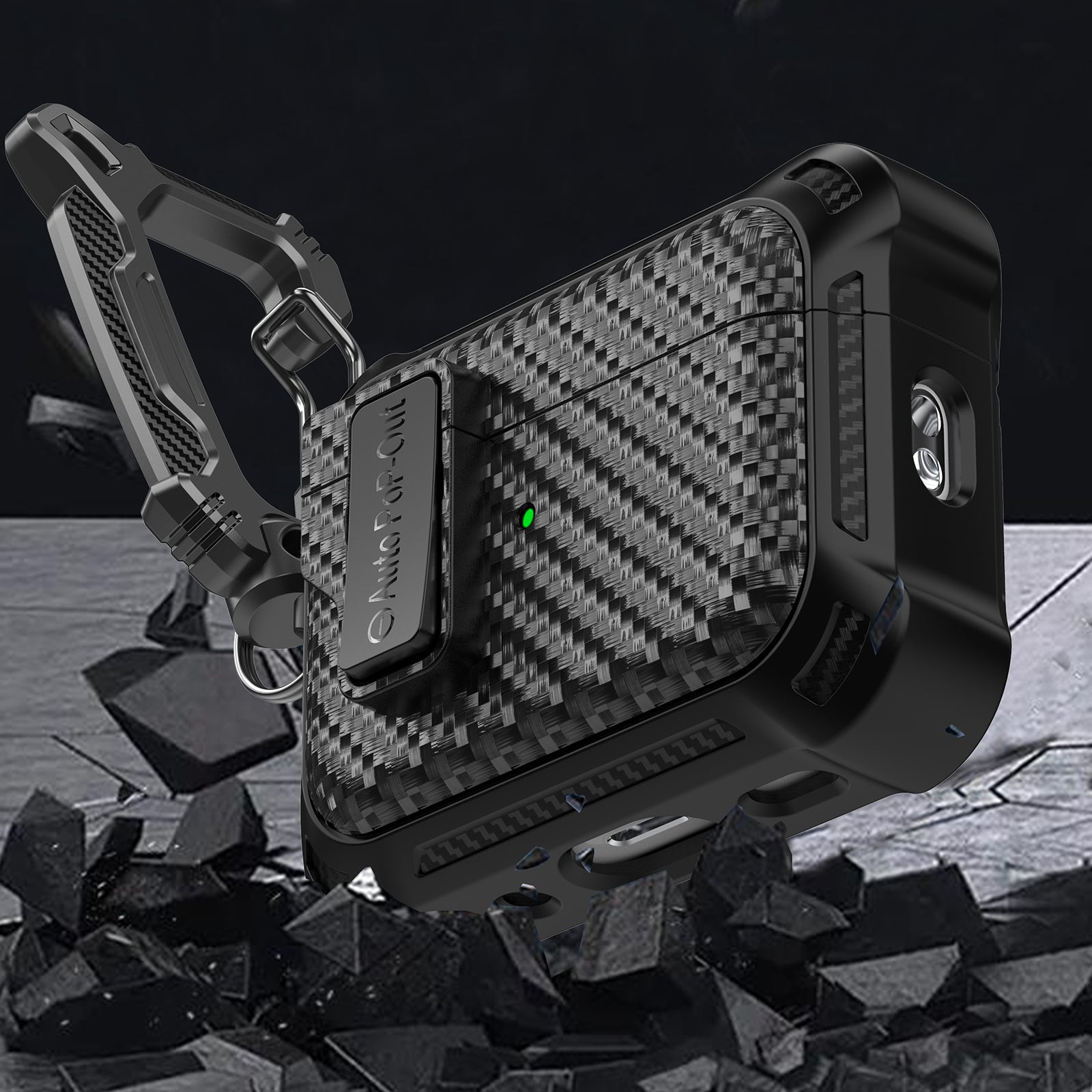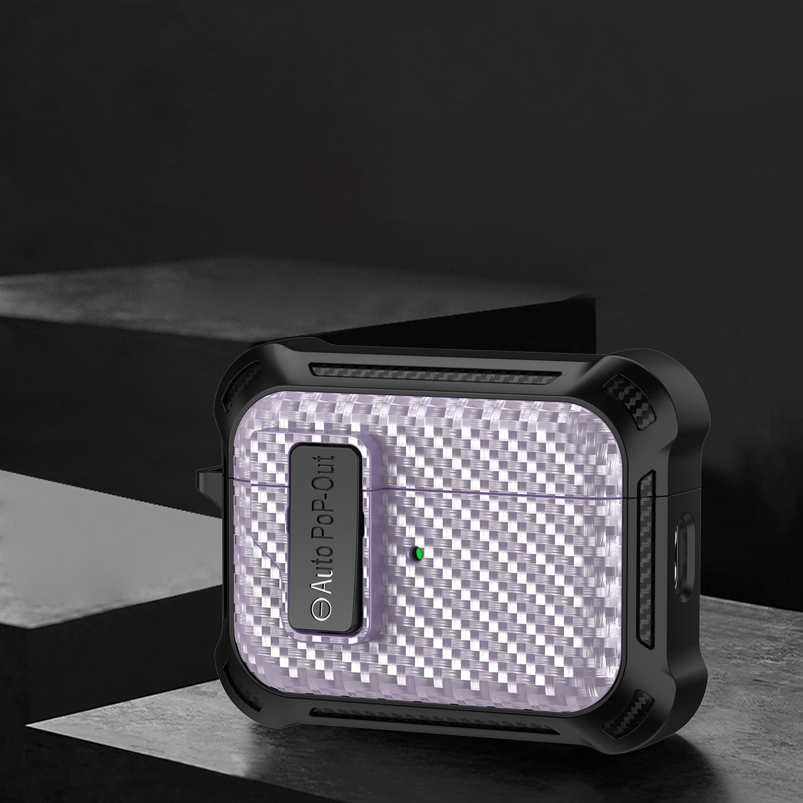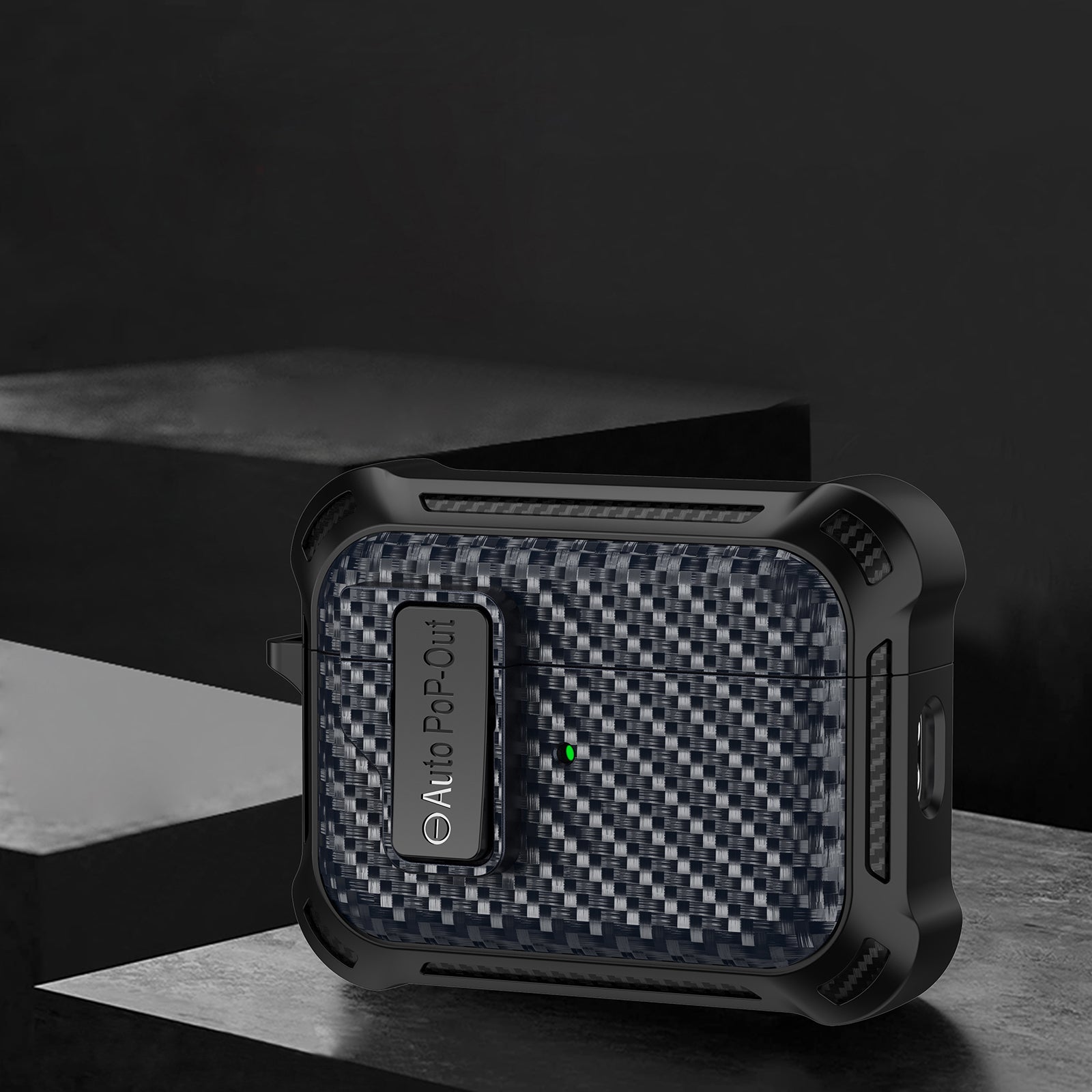 For AirPods Pro 2 Pressing Buckle Wireless Earphone Anti-drop Case Carbon Fiber Texture TPU+PC Cover