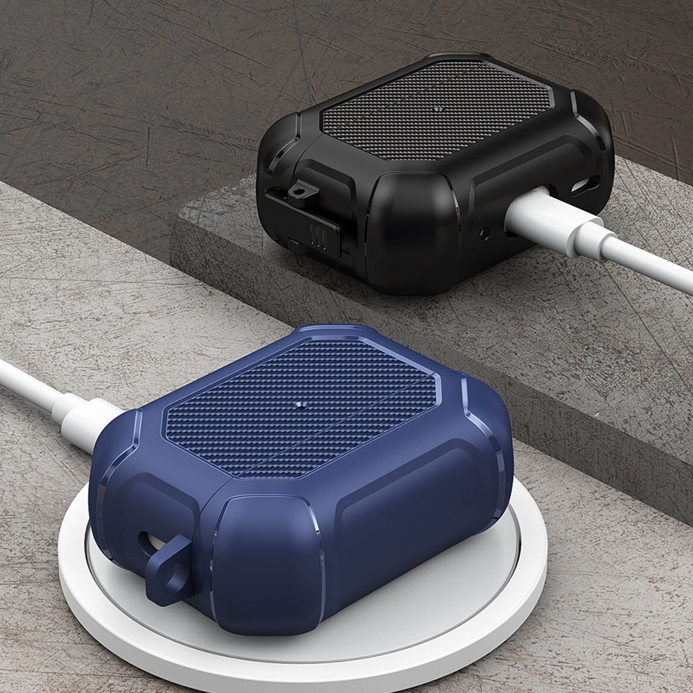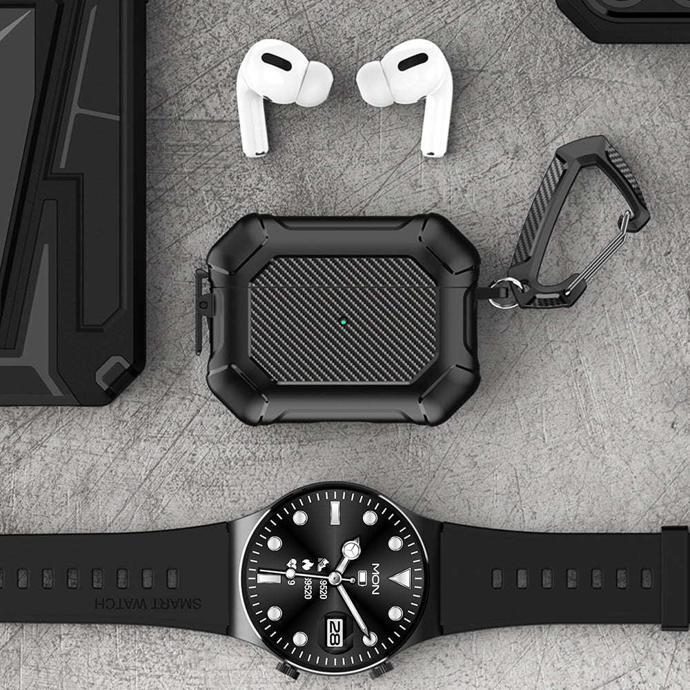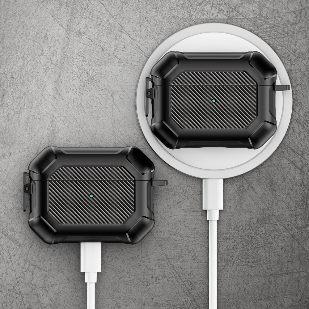 For AirPods Pro 2 TPU+PC Earphone Case Carbon Fiber Texture Reinforced Protective Cover with Carabiner