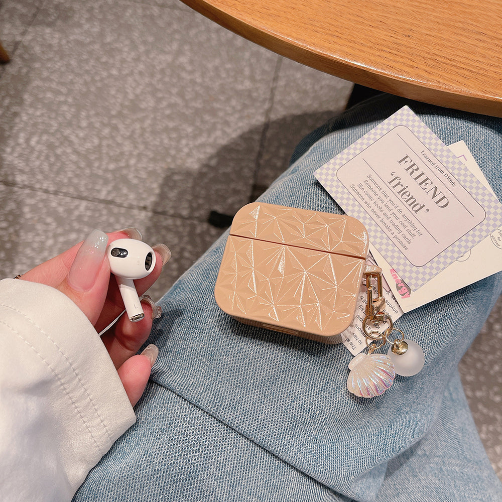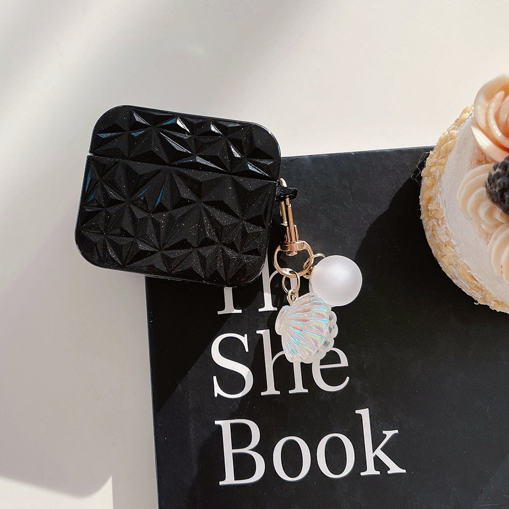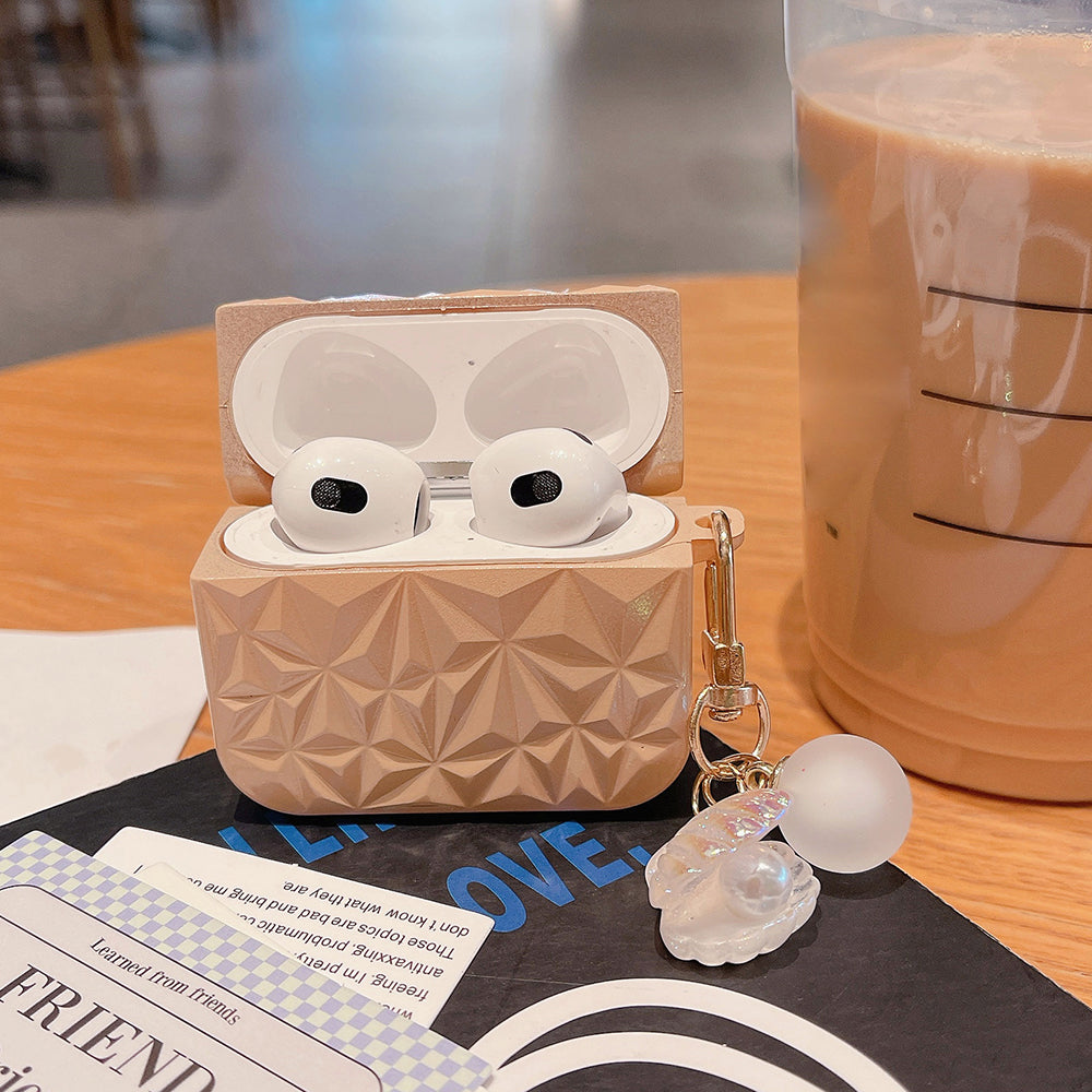 For Apple AirPods 3 Earphone Case Diamond Texture Earbud Protective TPU Cover with Shell Pendant