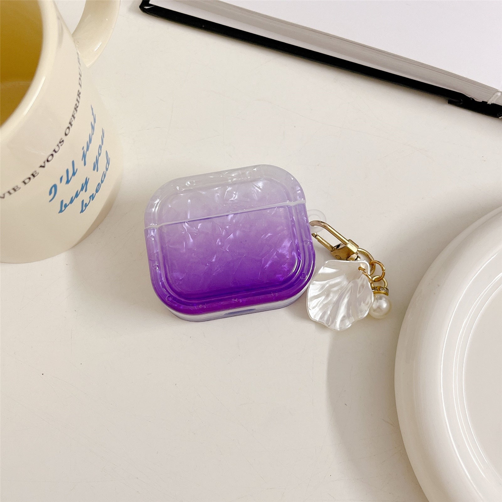 For Apple AirPods 3 Full Protective Cover Gradient Shell Grain Earphone Square TPU Case with Shell Shape Pendant