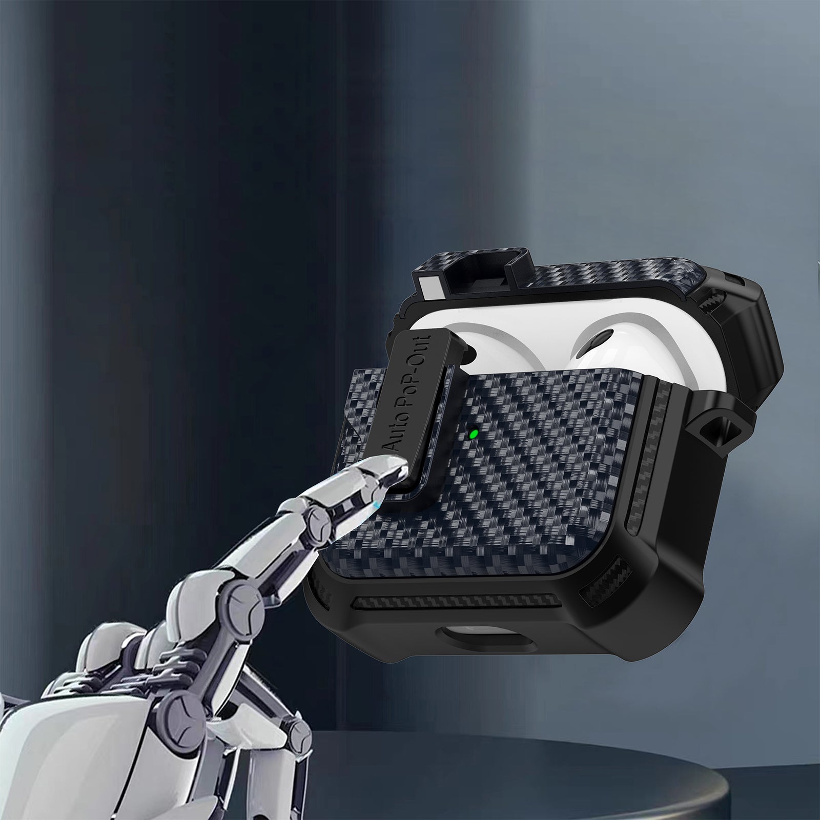 For Apple AirPods 3 Pressing Buckle TPU+PC Protective Case Carbon Fiber Texture Bluetooth Earphone Cover