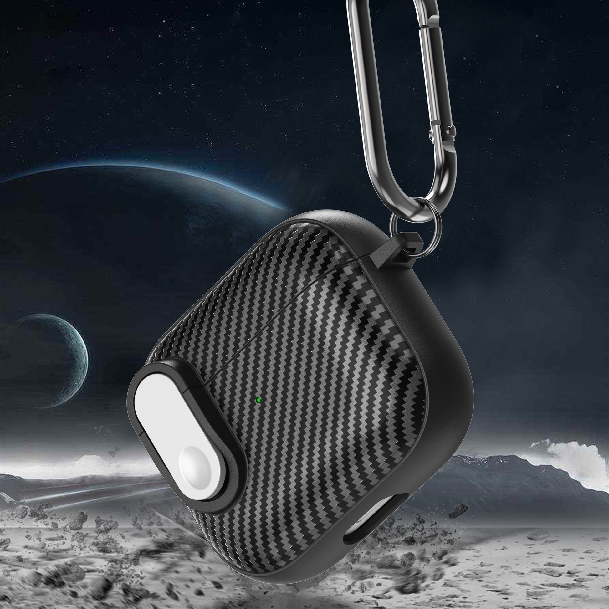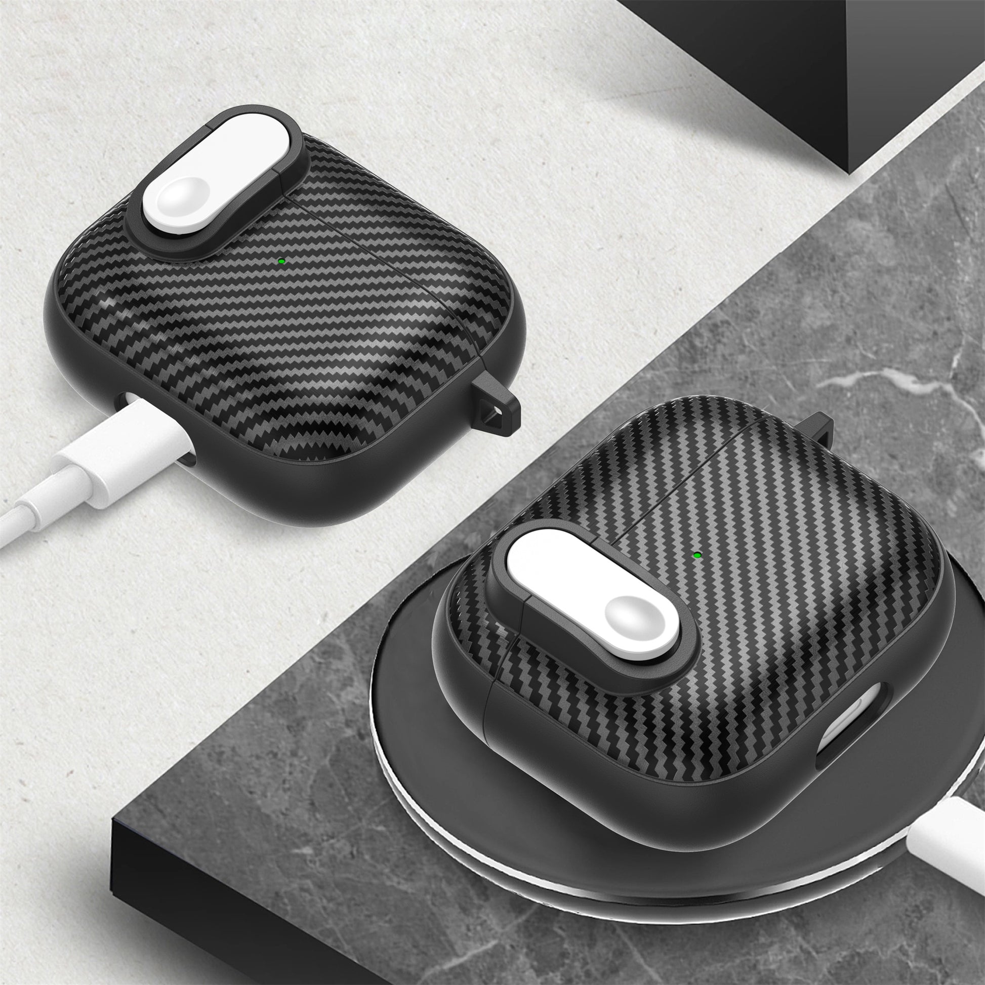 For Apple AirPods 3 TPU+PC Headset Case Buckle Design Carbon Fiber Cover with Anti Lost Hook