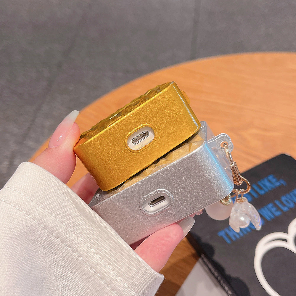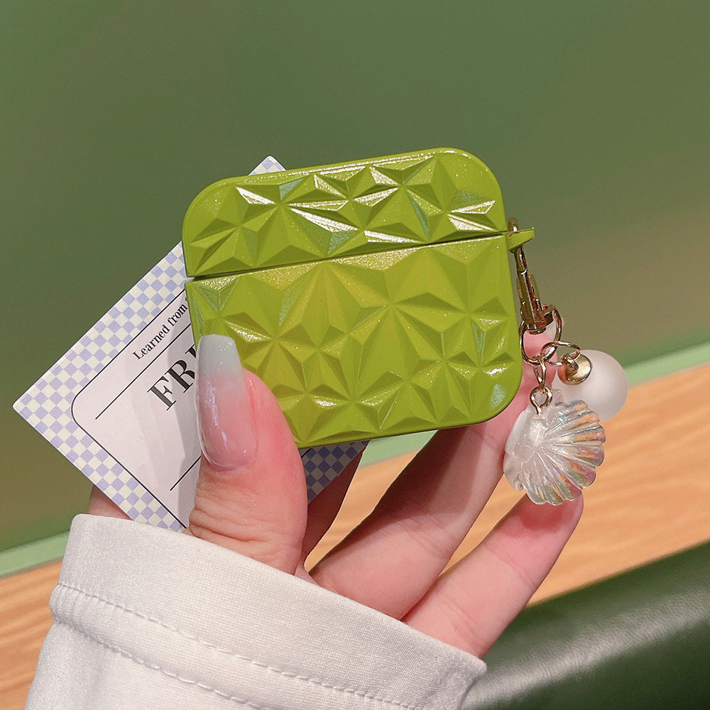 For Apple AirPods Pro Bluetooth Earphone TPU Case Diamond Texture Anti-drop Cover with Shell Pendant