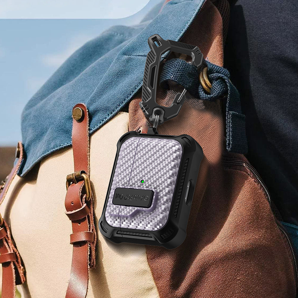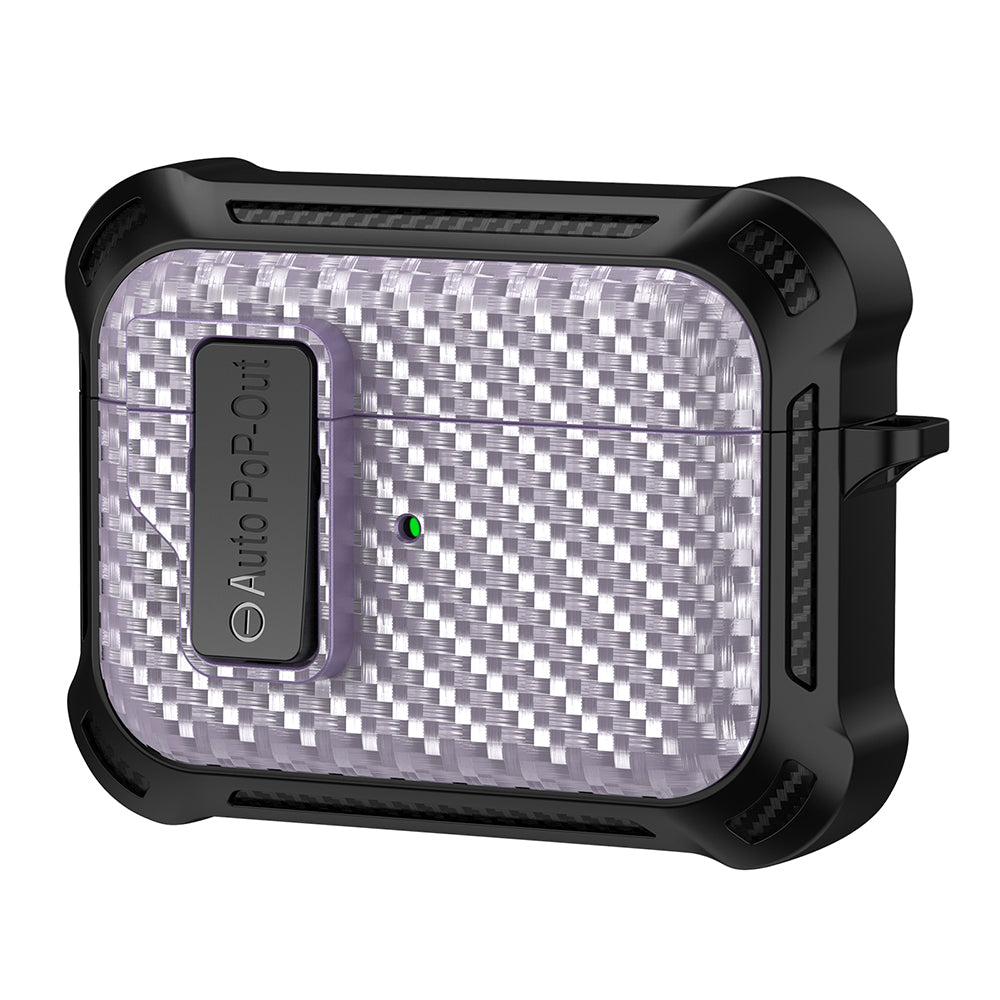 For Apple AirPods Pro Carbon Fiber Texture TPU+PC Anti-drop Cover Pressing Buckle Earphone Case