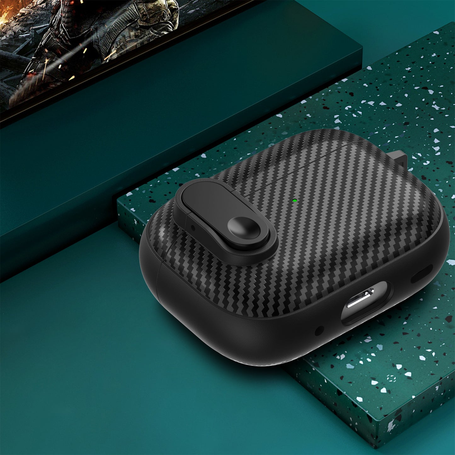 For Apple AirPods Pro Wireless Earbuds Case Carbon Fiber TPU+PC Colorful Buckle Cover with Keychain