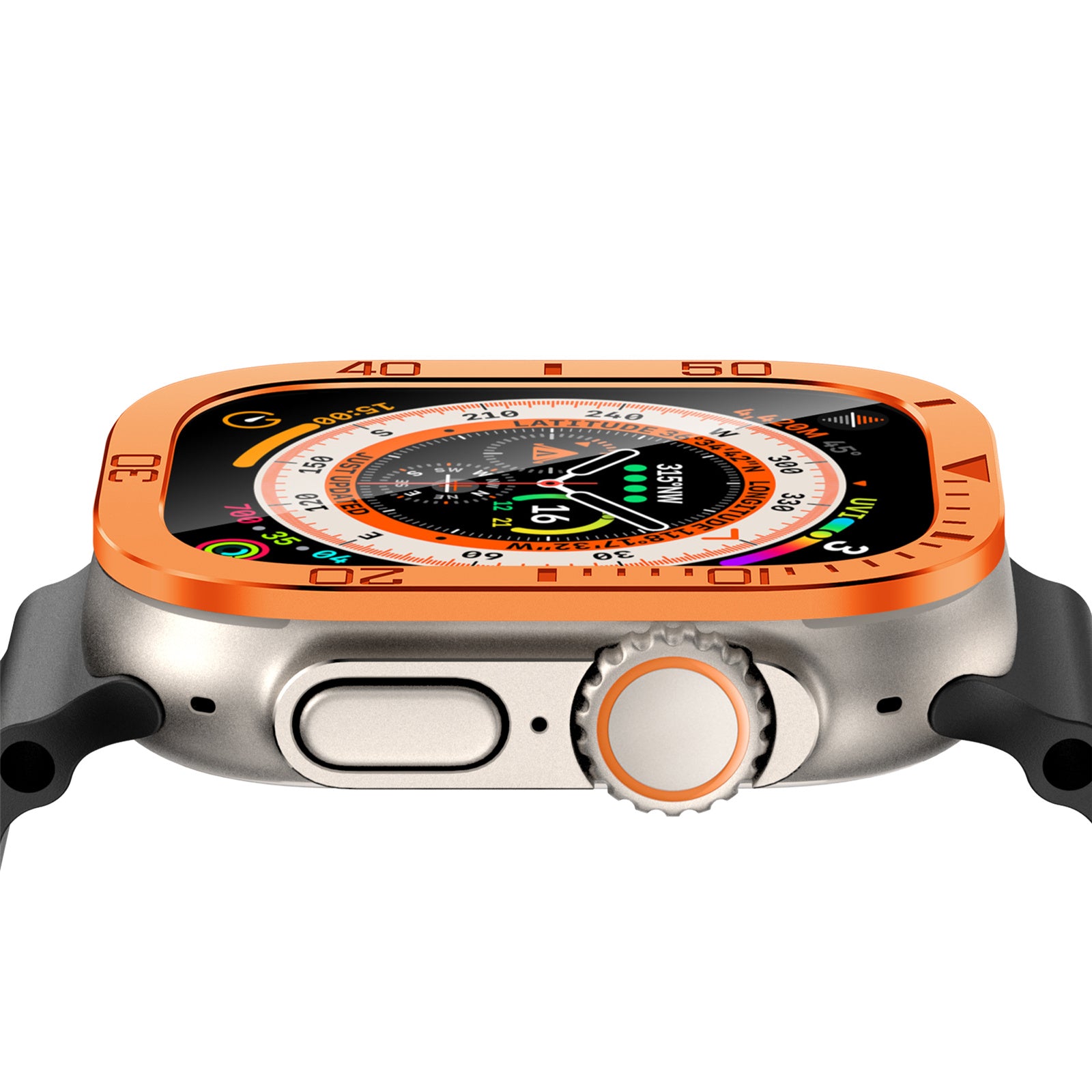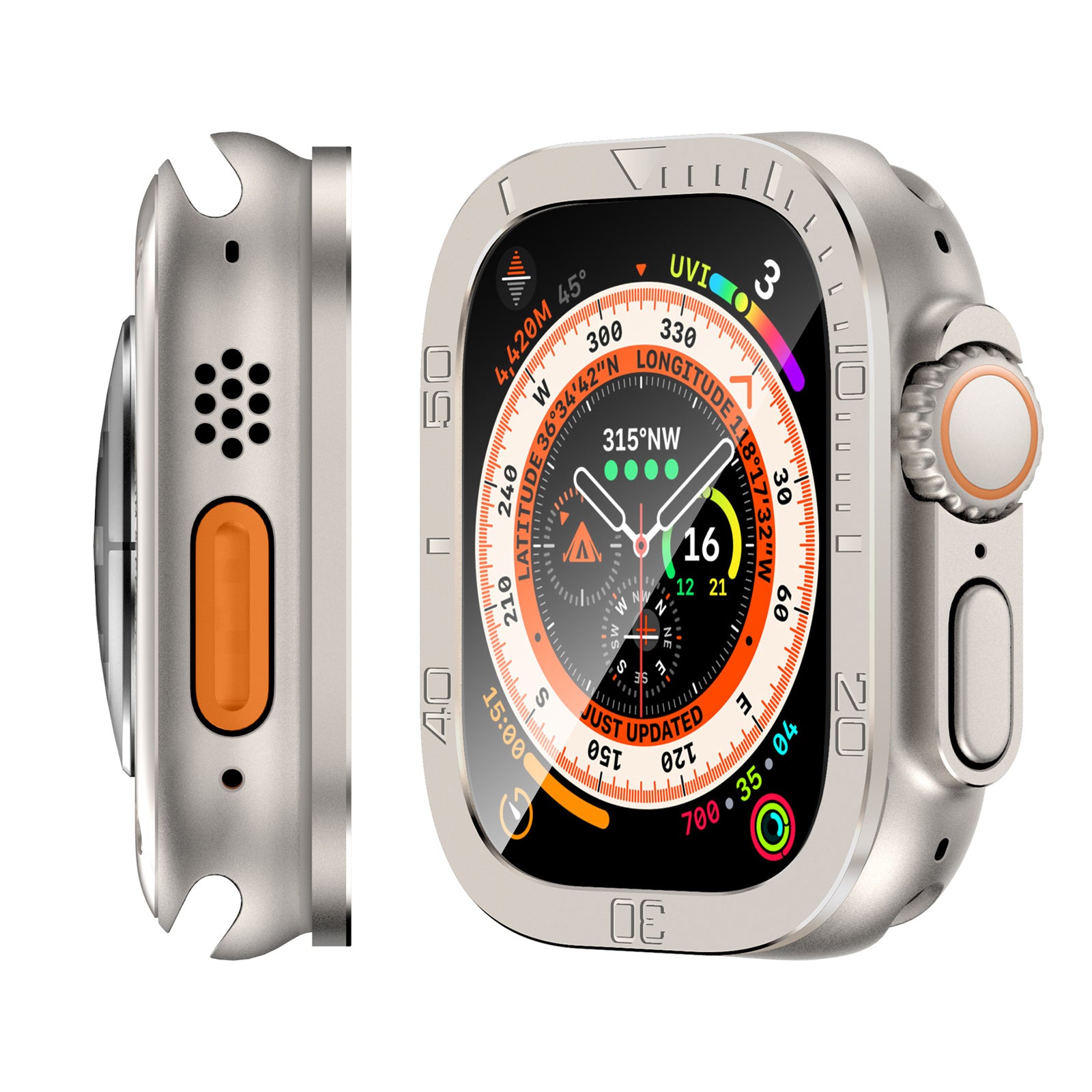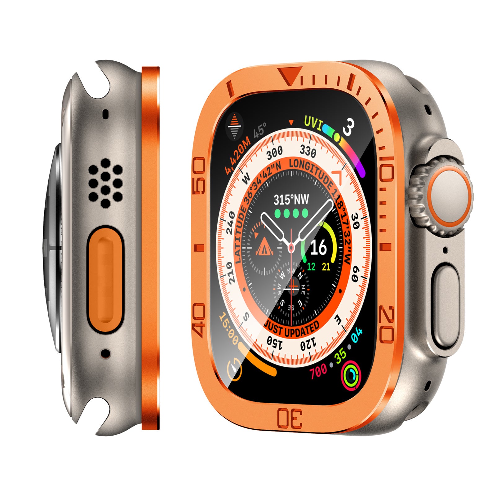 For Apple Watch Ultra 2 49mm / Ultra 49mm Tempered Glass Screen Protector Numbers Marker Metal Frame with Built-in Clear Film