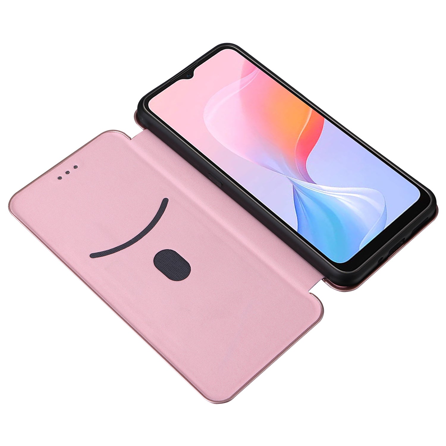 For Blackview A85 Carbon Fiber Texture Phone Case Leather Flip Stand Cover with Card Holder, Kickstand