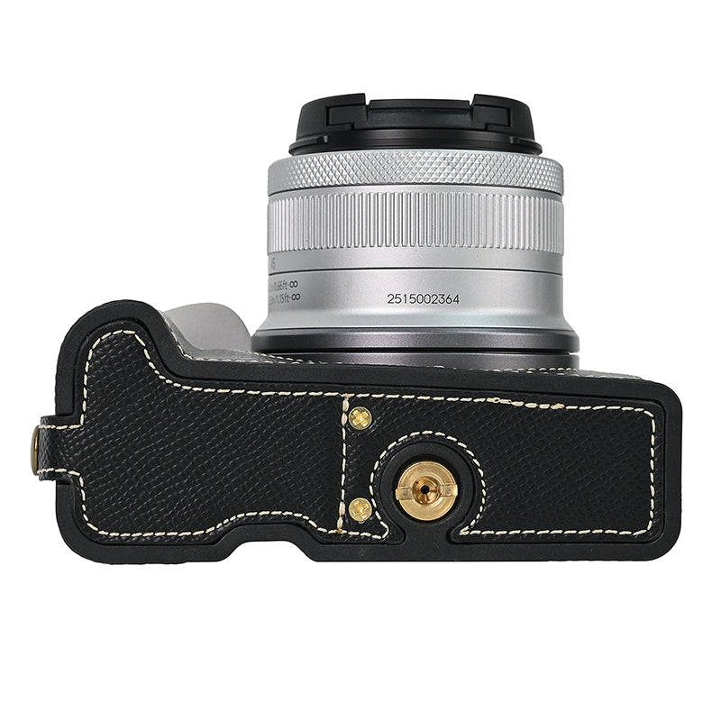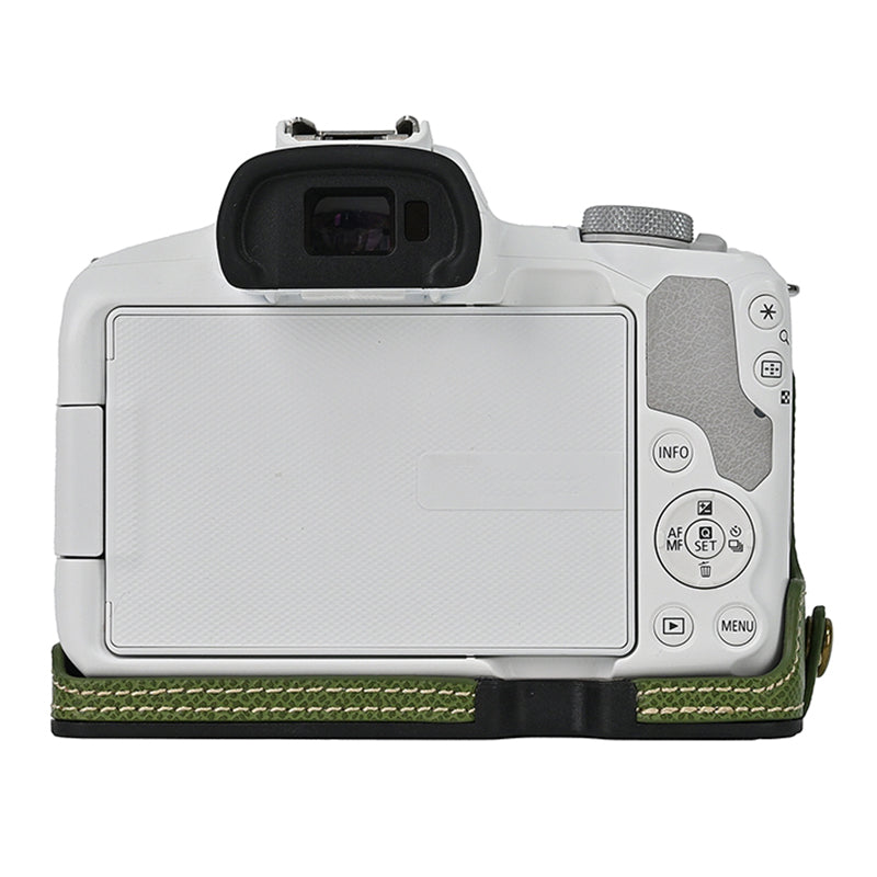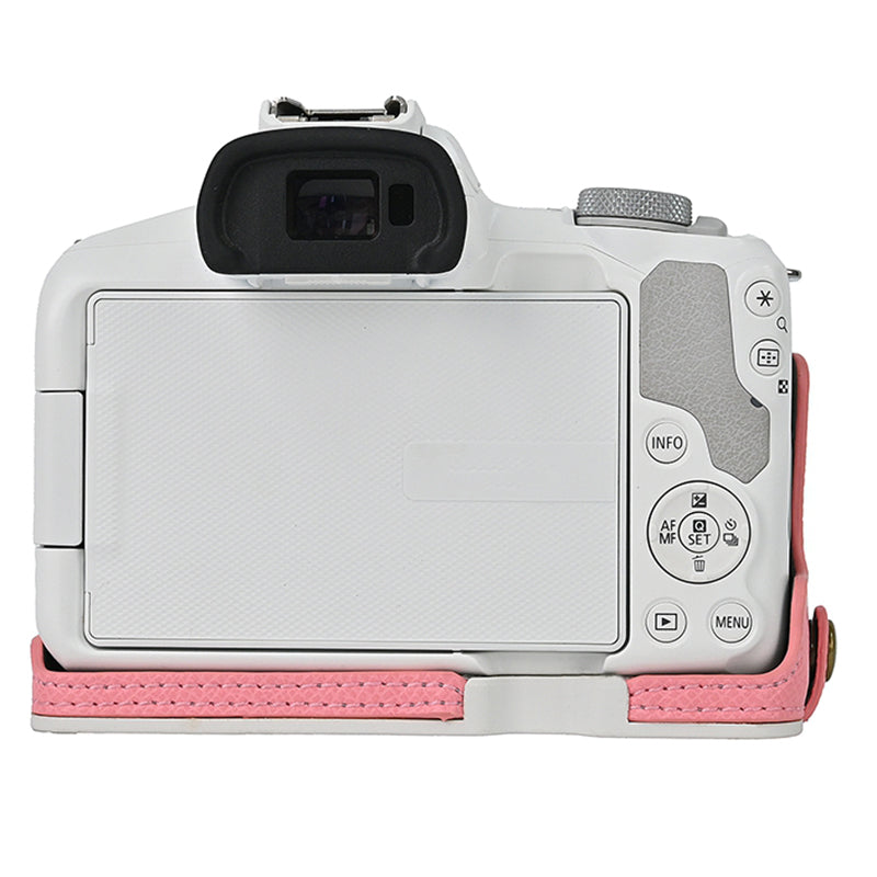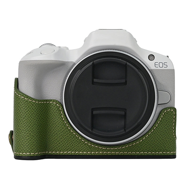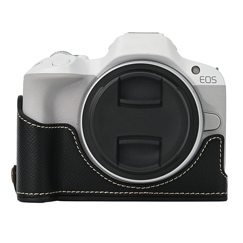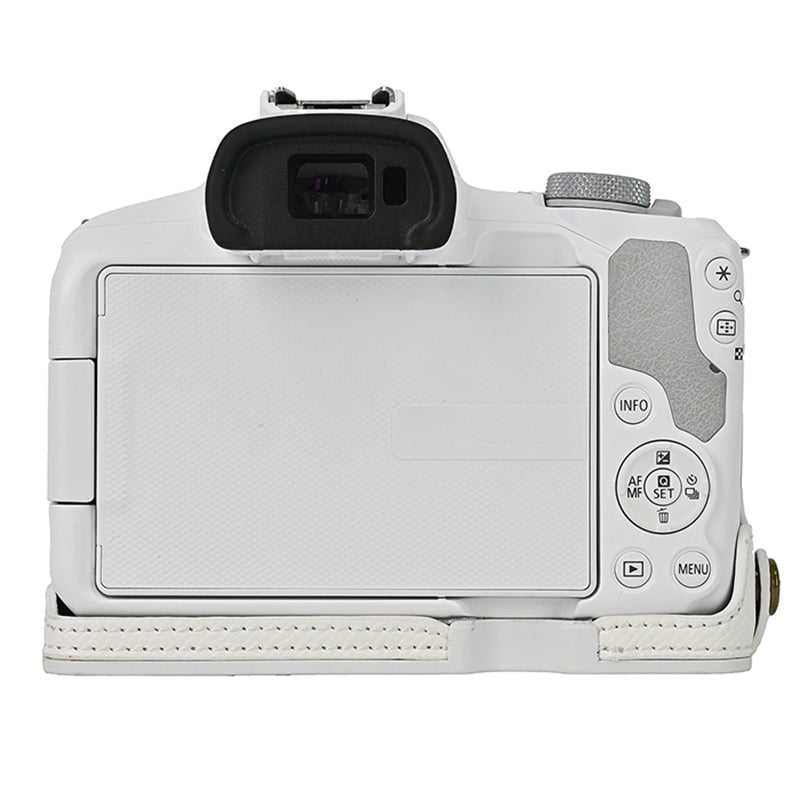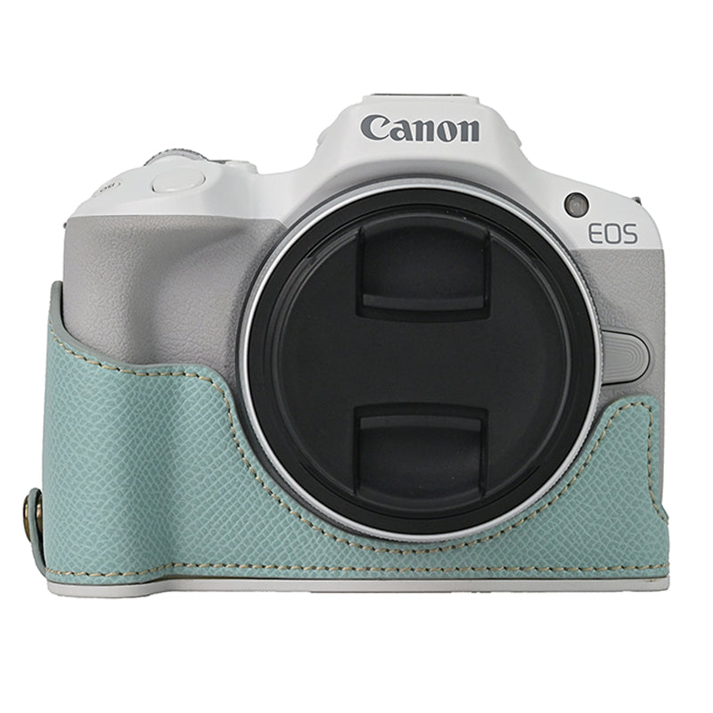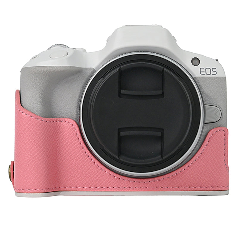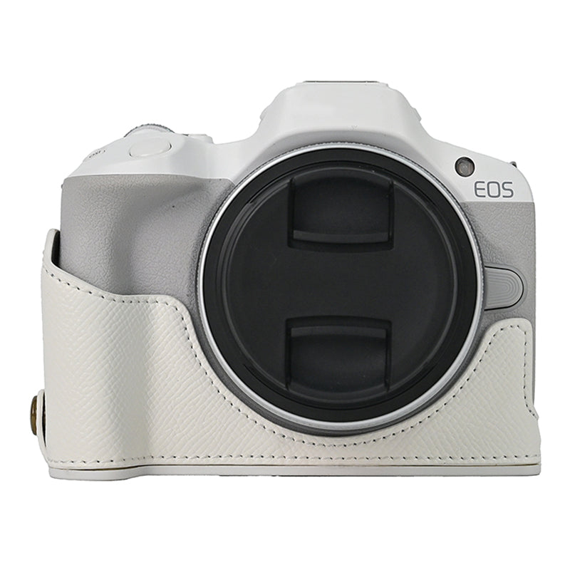 For Canon EOS R50 / R100 Anti-Shock PU Leather Camera Bottom Cover Large Opening Design Half Body Case with Strap