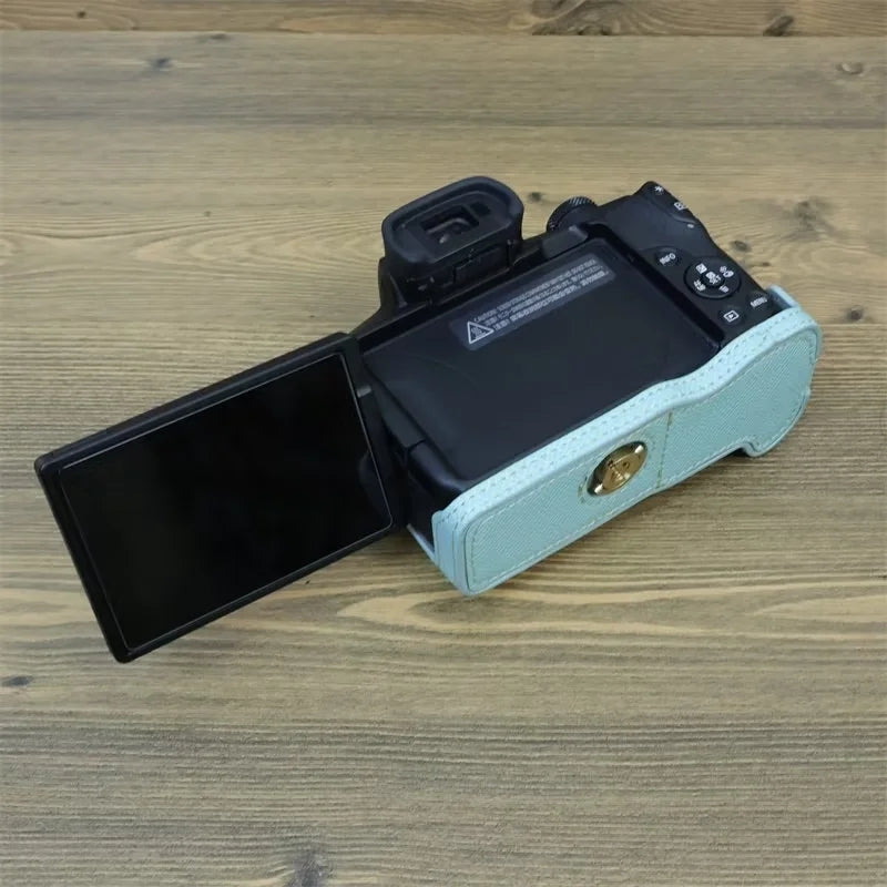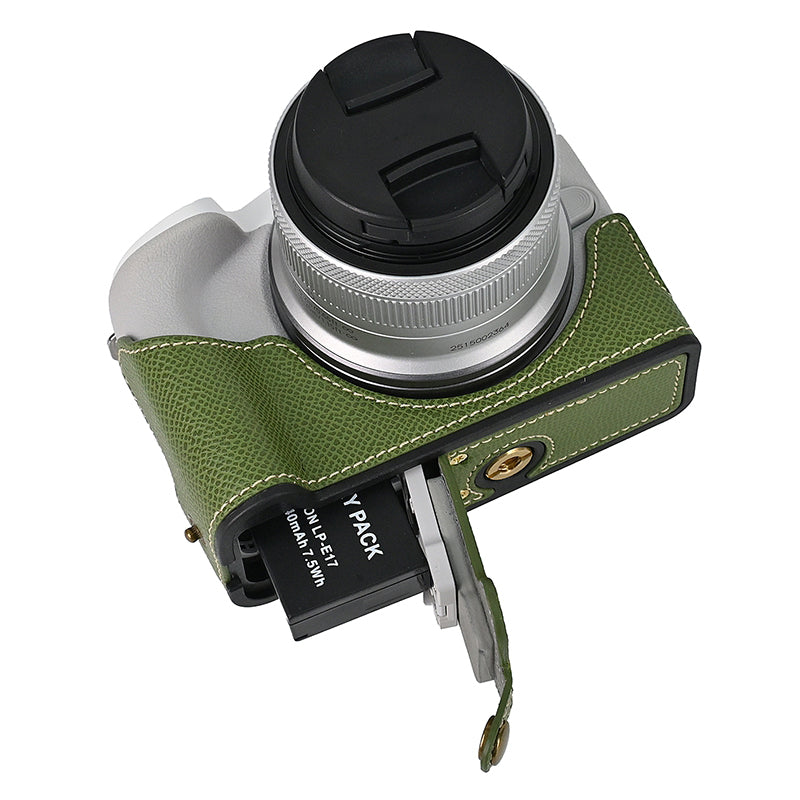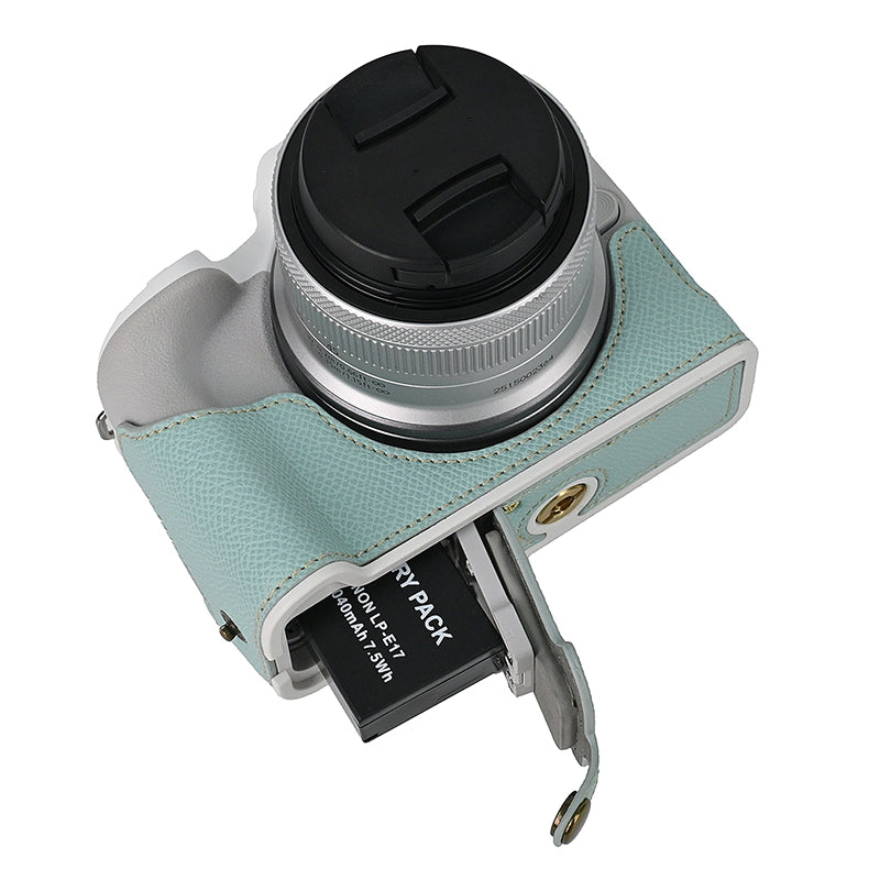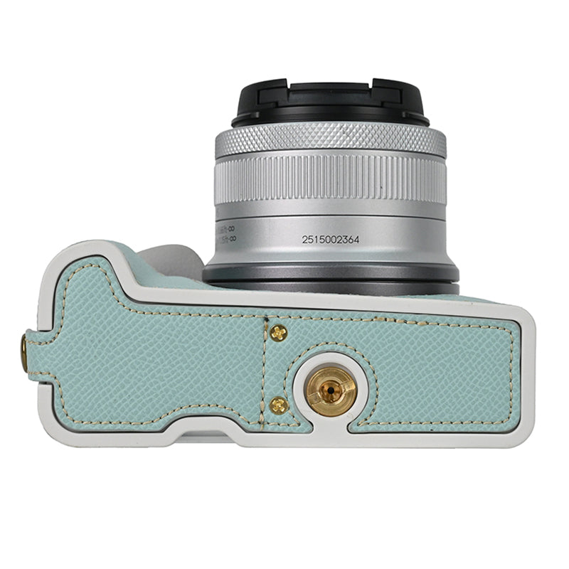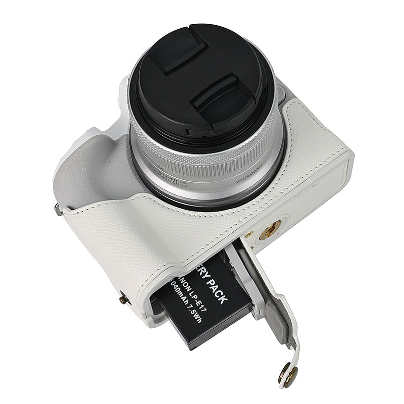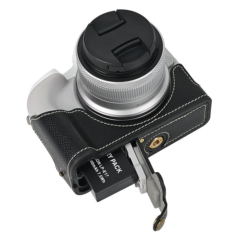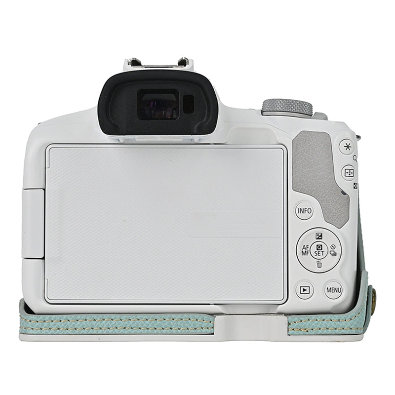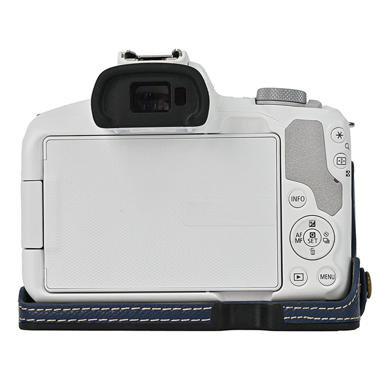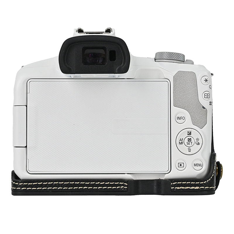 For Canon EOS R50 / R100 Anti-Shock PU Leather Camera Bottom Cover Large Opening Design Half Body Case with Strap