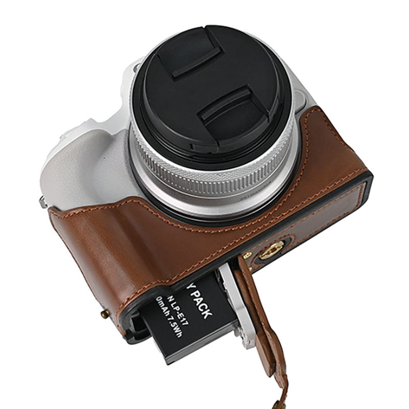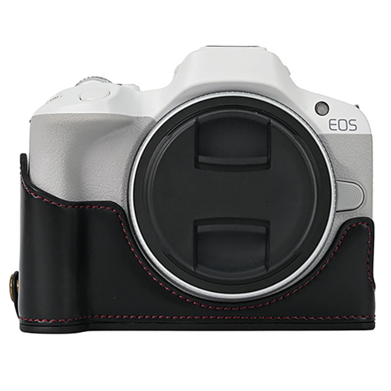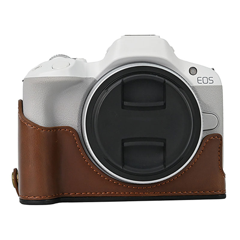 For Canon EOS R50 / R100 Camera Bottom Sleeve Large Opening Design PU Leather Half Body Case