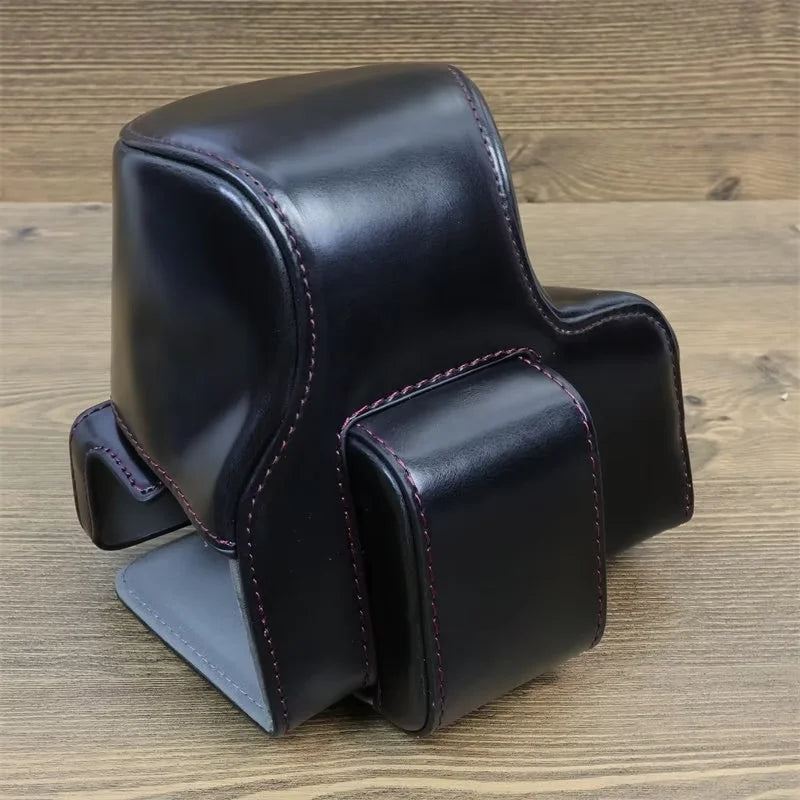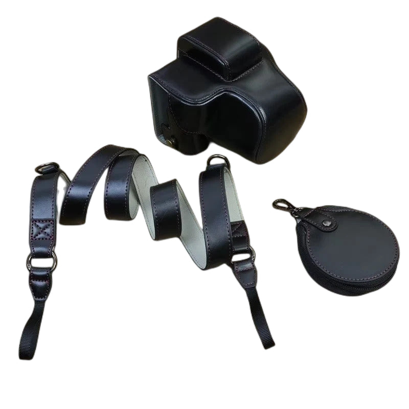 For Canon EOS R50 / R100 PU Leather Camera Case Battery Opening Design Camera Cover with Strap and Small Bag