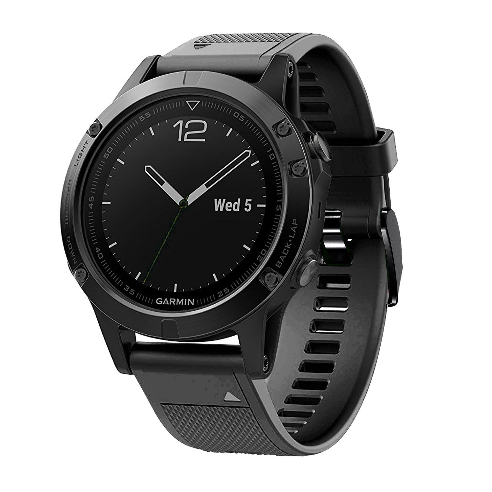 For Garmin Fenix 5 Silicone Sport Watch Band Adjustable Wrist Strap with Black Buckle