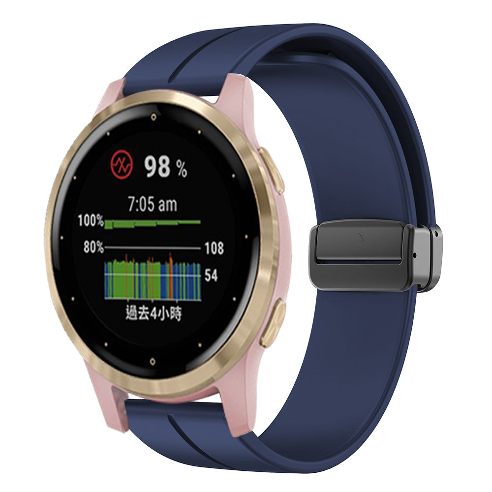 For Garmin Forerunner 265S / 255S / Venu 2S Watch Band 18mm Silicone Strap with Magnetic Folding Black Buckle