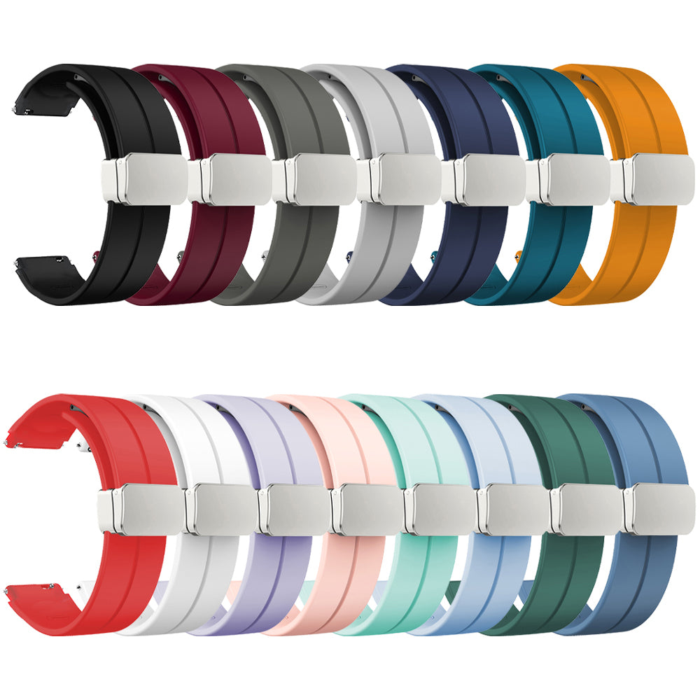 For Garmin Forerunner 265S / 255S / Venu 2S Watch Strap 18mm Silicone Watchband with Magnetic Folding Silver Buckle