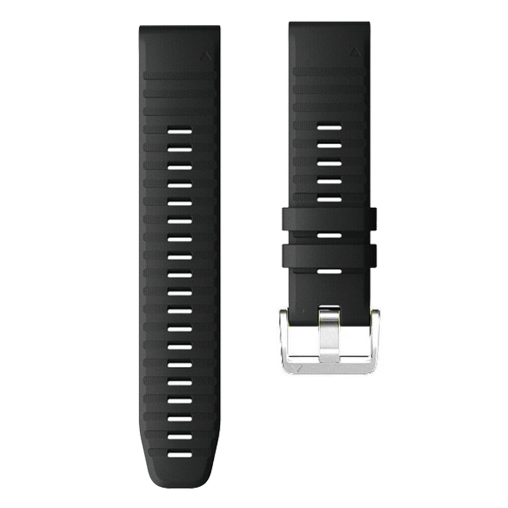 For Garmin Tactix 7 Pro / Fenix 7X / Fenix 6X Pro 26mm Watch Band Silicone Wrist Strap with Steel Silver Buckle