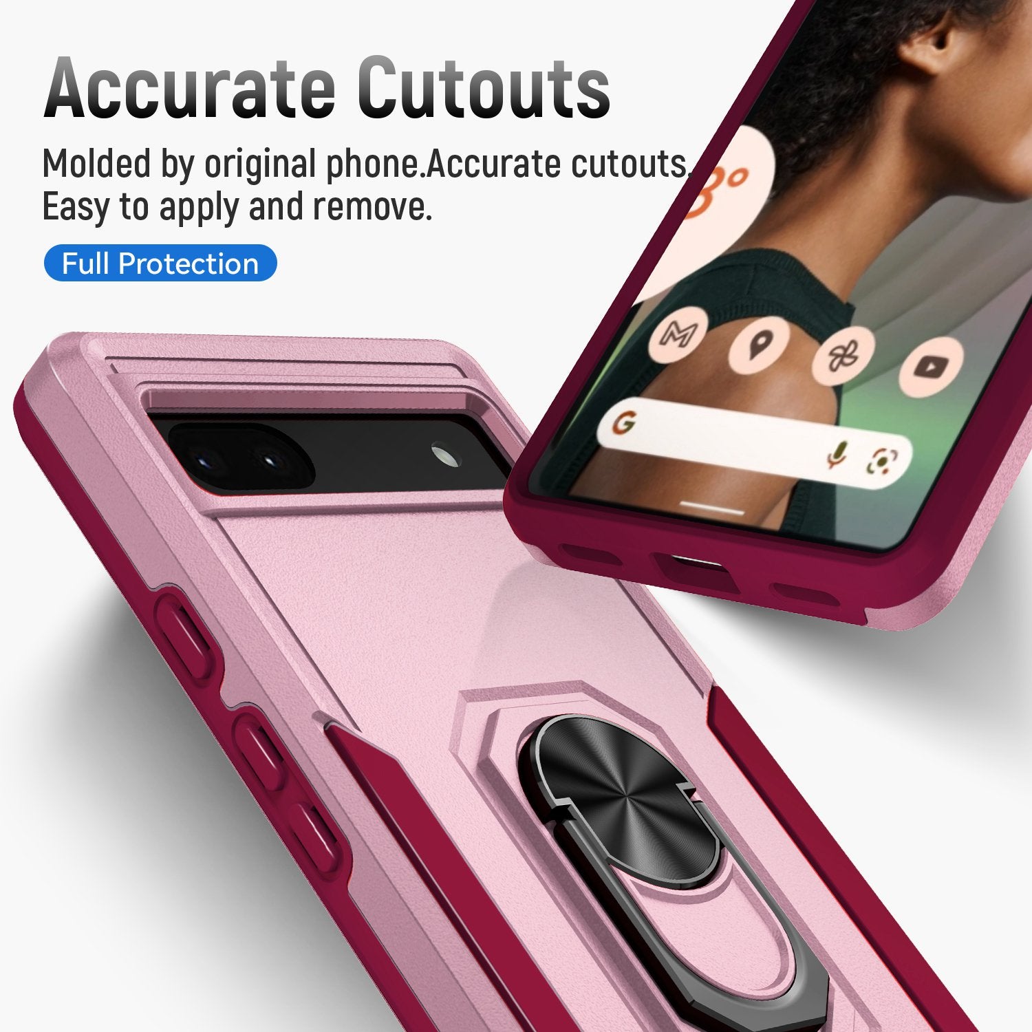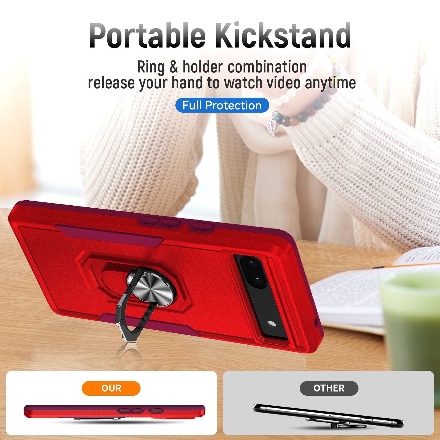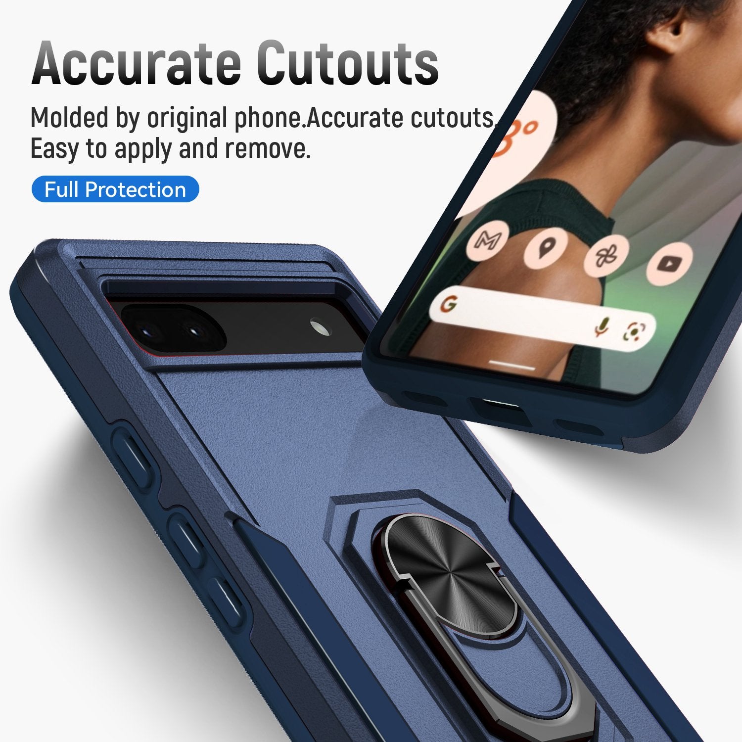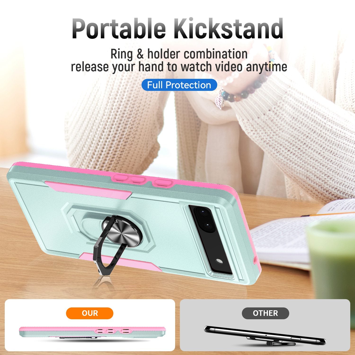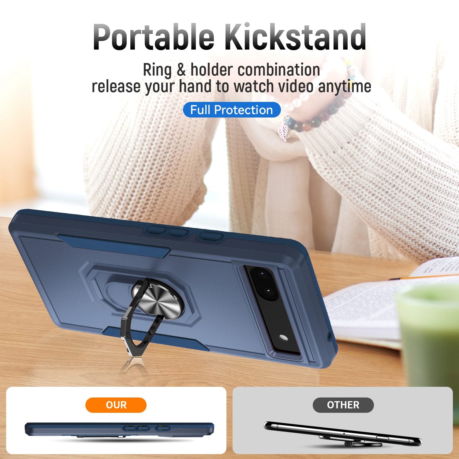 For Google Pixel 6a Defender Series PC + TPU Phone Case, Well-protected Wear-resistant Back Cover with Adjustable Ring Kickstand